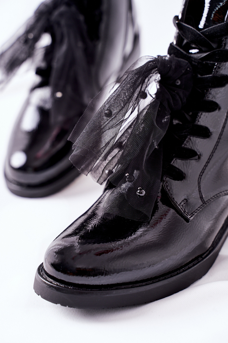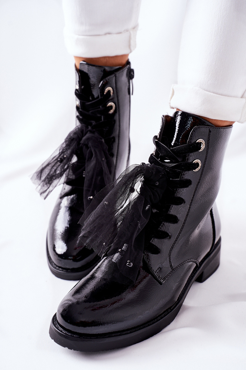 Klasické Dámské Teplé Boty Lakovane Černé La Grotta