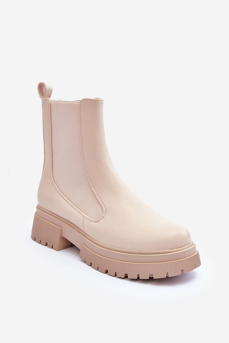 Klasické dámské kotníkové boty byly vyrobeny z ekologické kůže. Umístěny na platformě a plochém podpatku. Špičky zaoblené. Boty mají na bočních stranách elastické vložky. Musíte mít tento model ve svém šatníku! Při výběru velikosti se řiďte tabulkou velikostí.