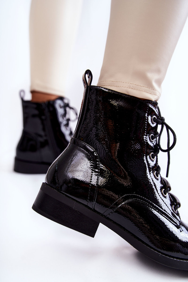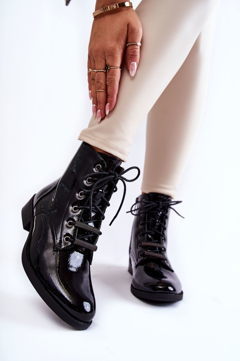 Klasické a elegantní kozačky vyrobené z ekologické kůže. Vnitřek je pokryt hřejivou a na dotek příjemnou obuvní dekou, která zaručí pohodlí v každé situaci. Boty jsou nasazeny na plochém m podpatku. Klasické šněrování vpředu zdobí odznaky. Kozačky mají navíc zip na boku svršku a vyztužený podpatek. Nezapomeňte se podívat na celou naši nabídku bot! Při výběru velikosti použijte tabulku velikostí.