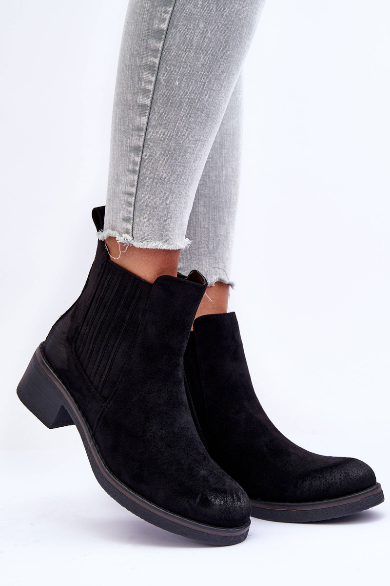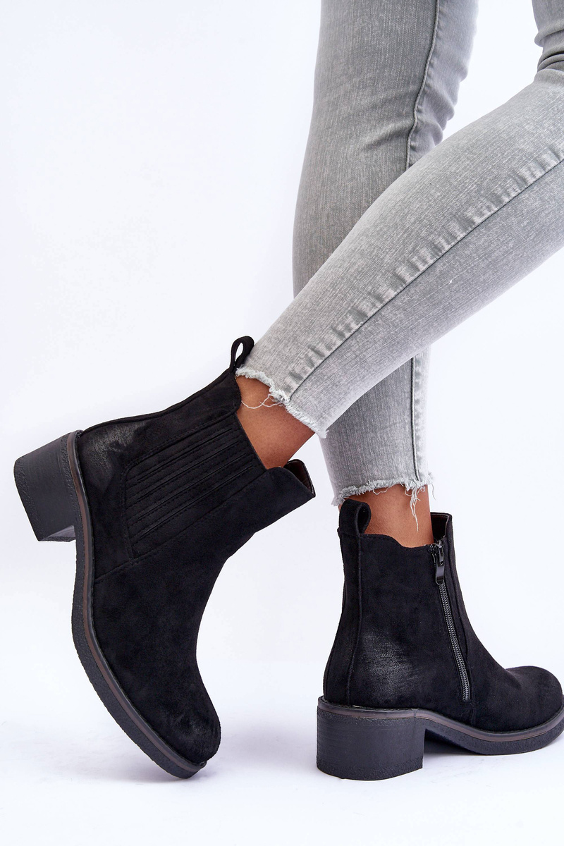Klasické dámské boty byly vyrobeny z eko semiše. Je vybaven lehkou platformou a plochou patou. Tento model má zaoblený špičku. Vystýlány jsou obuvnickou vložkou a uzavírají se na zip po straně. Neváhejte a kupte si je hned! Při výběru velikosti se řiďte tabulkou velikostí.