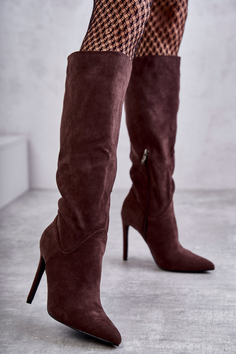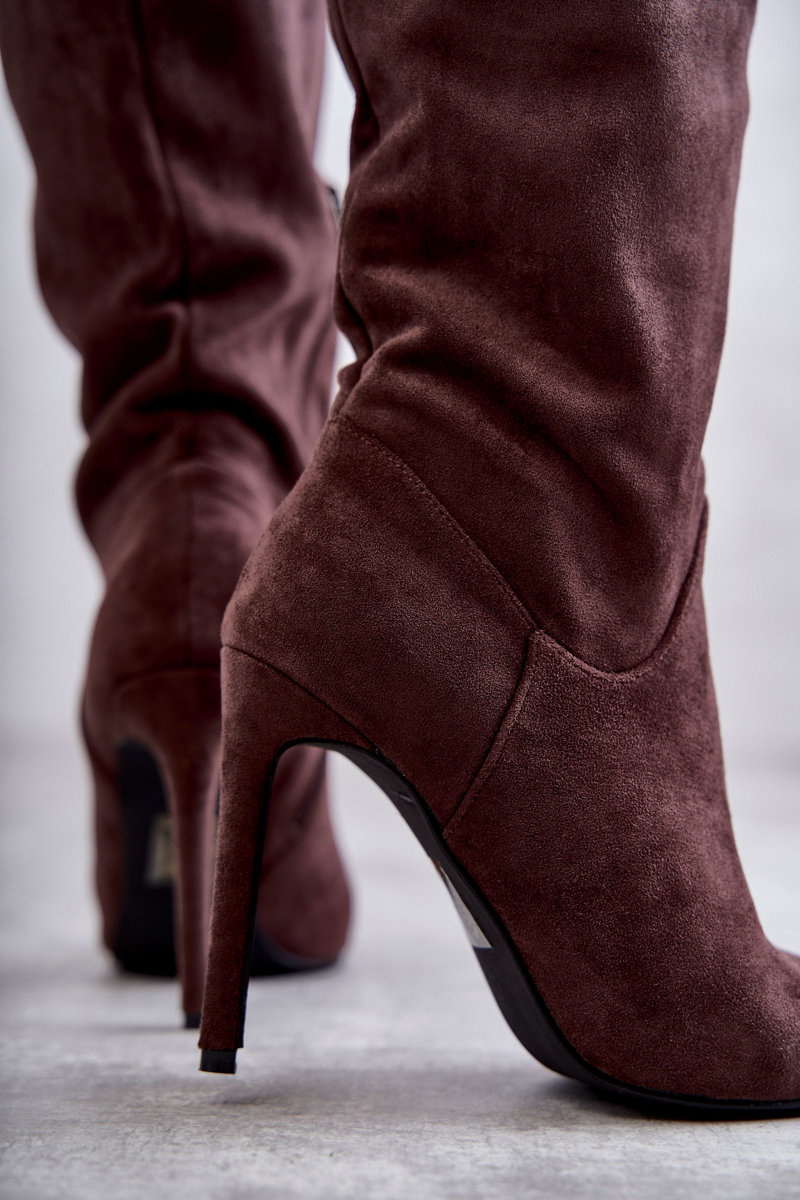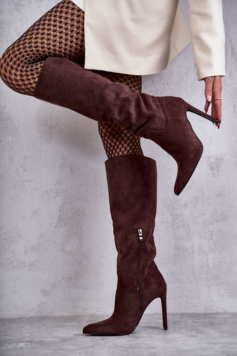 Klasické dámské kozačky se svrškem nad kolena. Mají jemné prošívání. Vyrobeno z ekologického semiše příjemného na dotek. Model byl upevněn na podpatku ve formě čepu. Vyztužená pata. Zapínání na zip na boku. Pohodlný model, který by neměl chybět ve vašem šatníku! Využijete je v mnoha stylech! Musí být vaše! Při výběru velikosti použijte tabulku velikostí.
