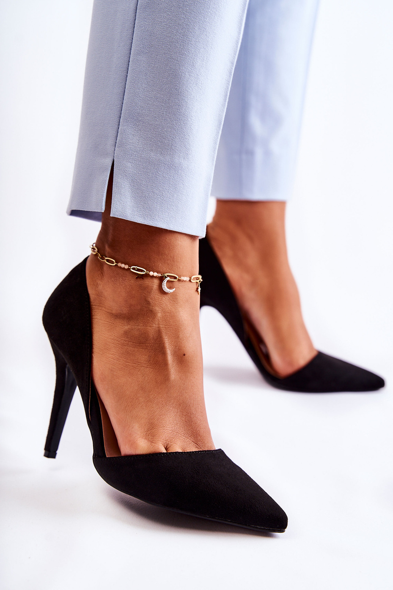 Klasické vysoké podpatky jsou vyrobeny z ekologického semiše. Po stranách svršku mají decentní výřezy. Pata je navíc vyztužena gumičkou. Boty byly nasazeny na podpatku ve formě jehlového podpatku. Špičatá špička. Pohodlná stélka je vyrobena z eko kůže. Perfektní model pro všechny druhy oslav. Rozhodně byste je měli mít ve svém šatníku! Při výběru velikosti použijte tabulku velikostí.