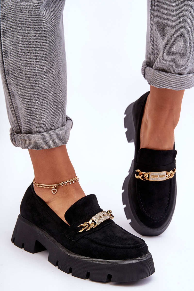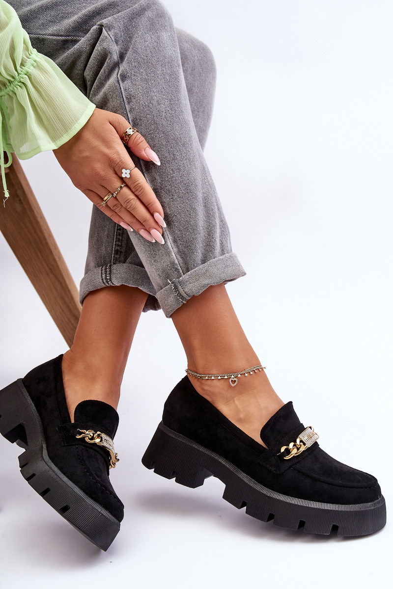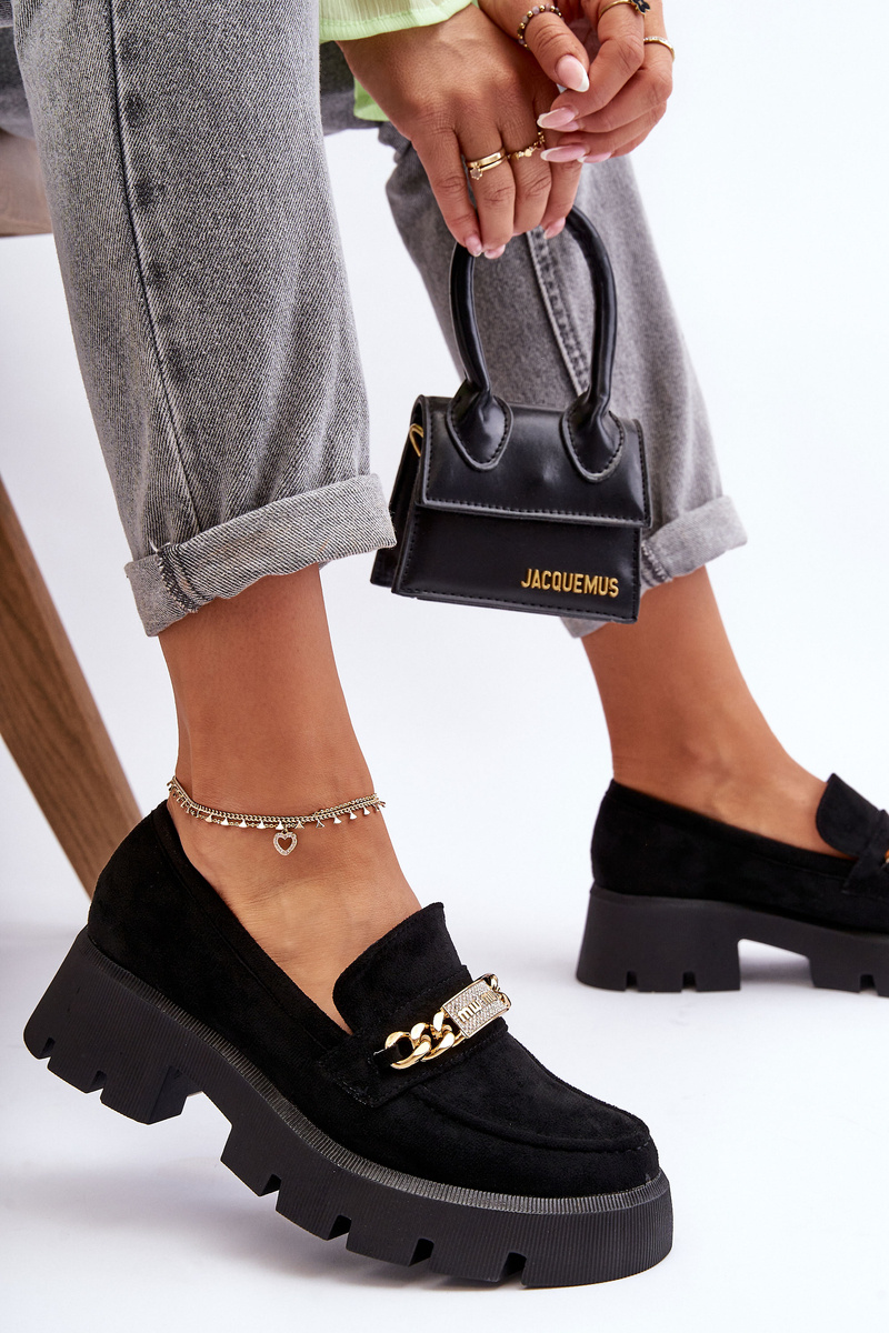 Klasické semišové mokasíny na masivní platformě černé Catch Me!