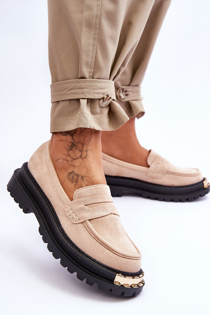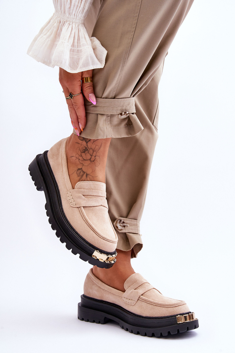 Klasické semišové mokasíny s zdobením Béžove Monaro