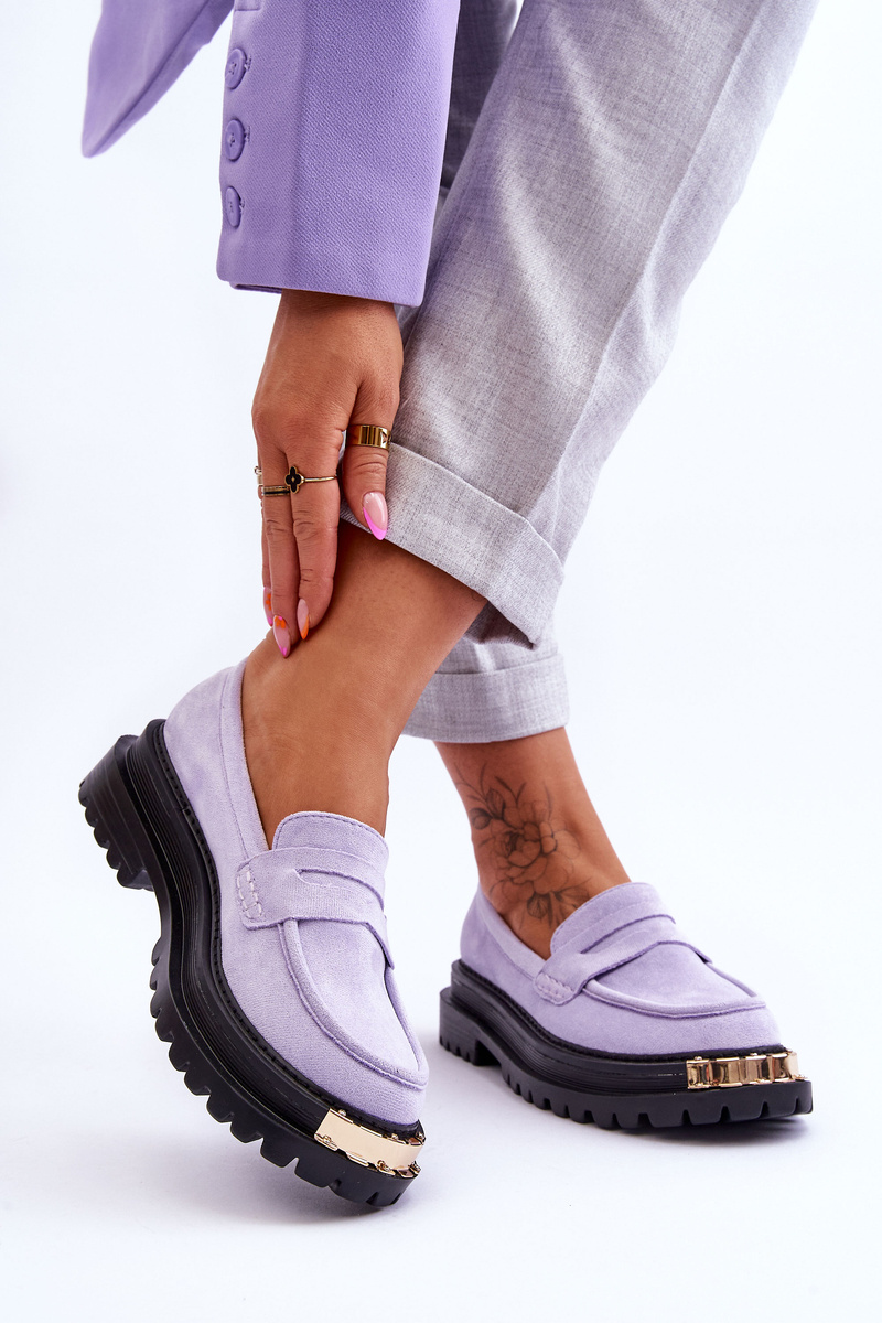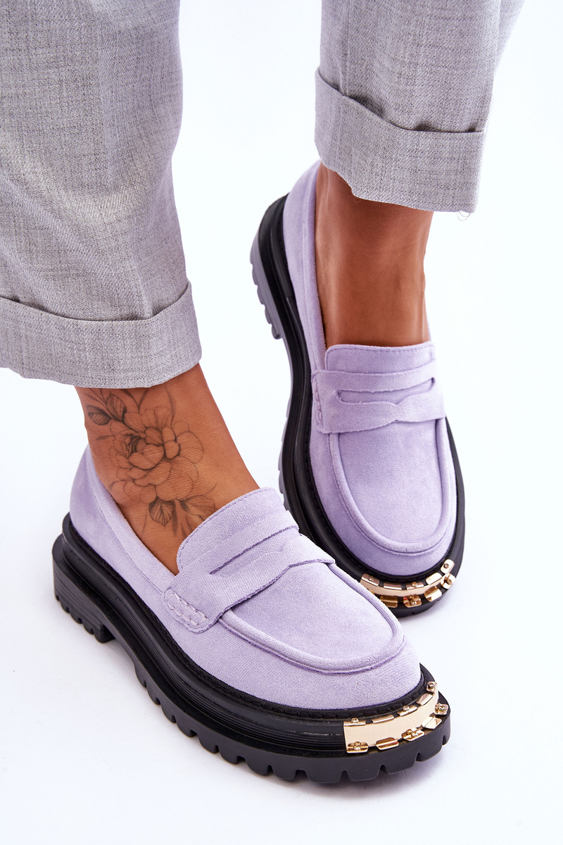 Klasické semišové mokasíny s zdobením fialove Monaro