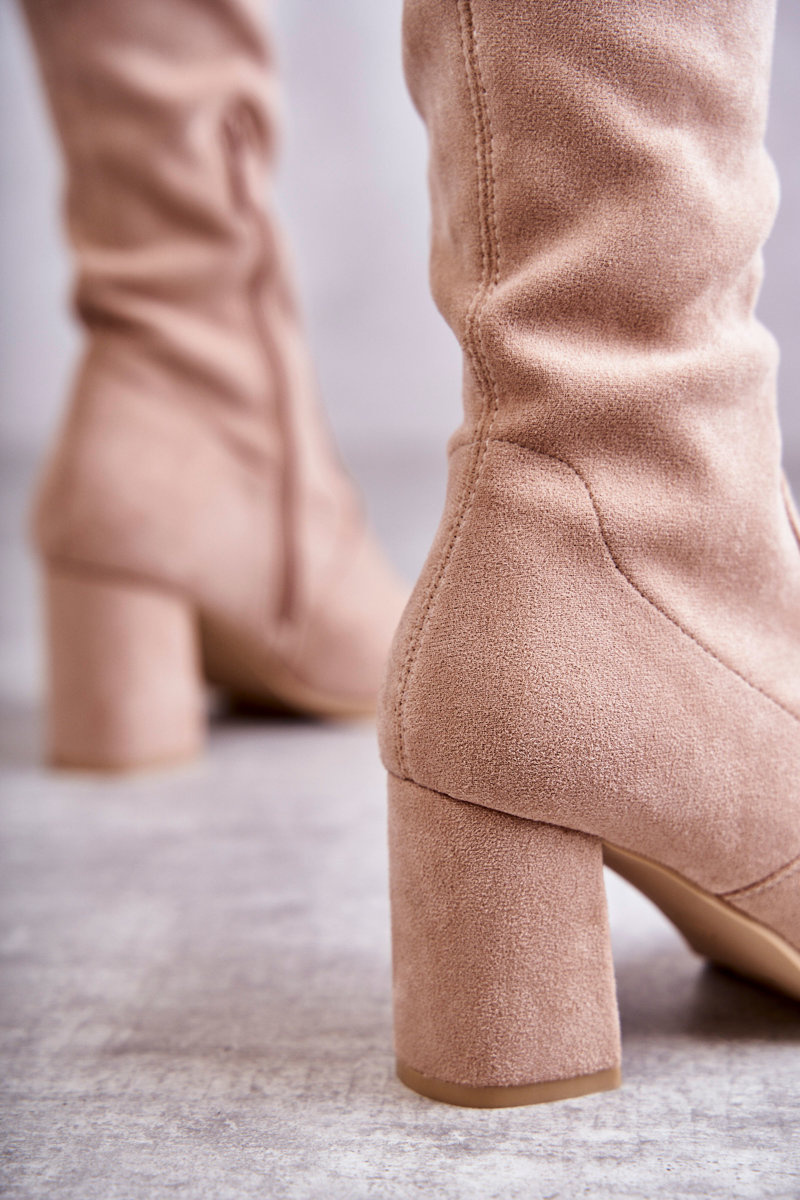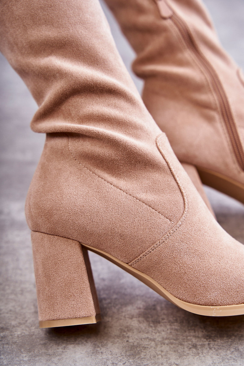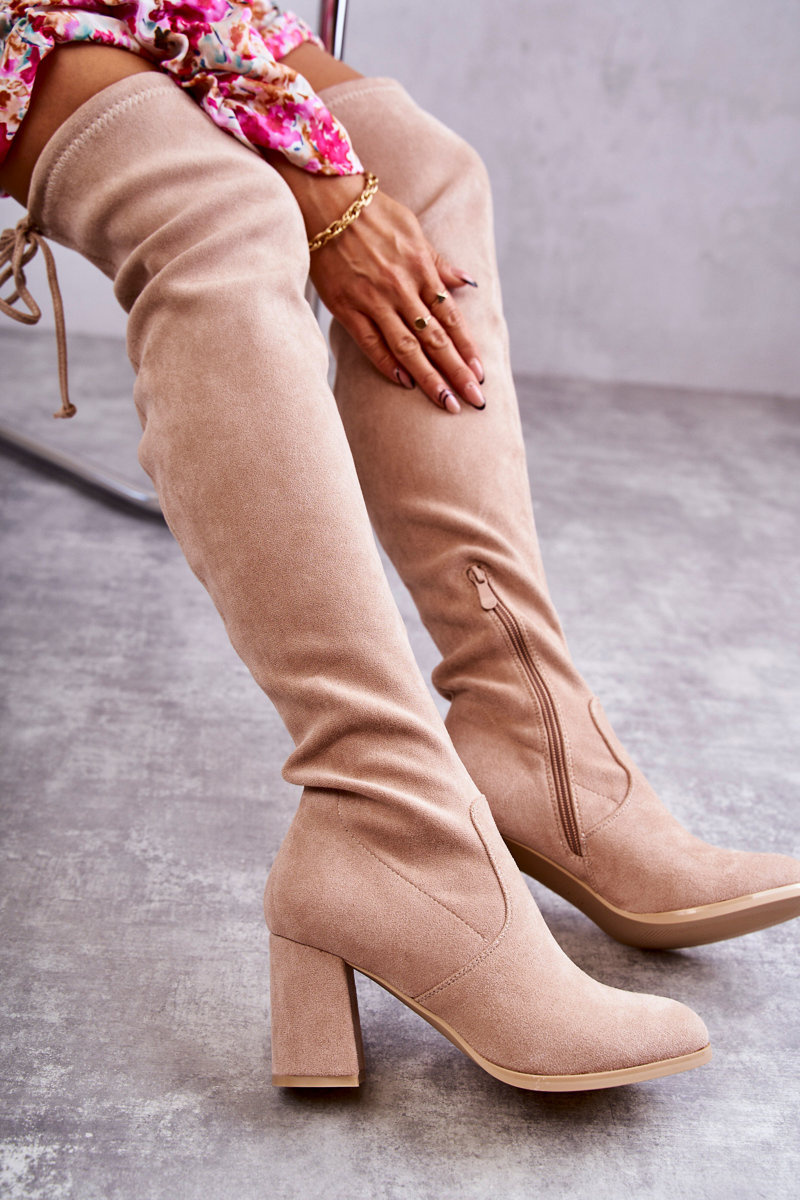 Klasické semišové vysoké boty na stehna béžové Clarissa