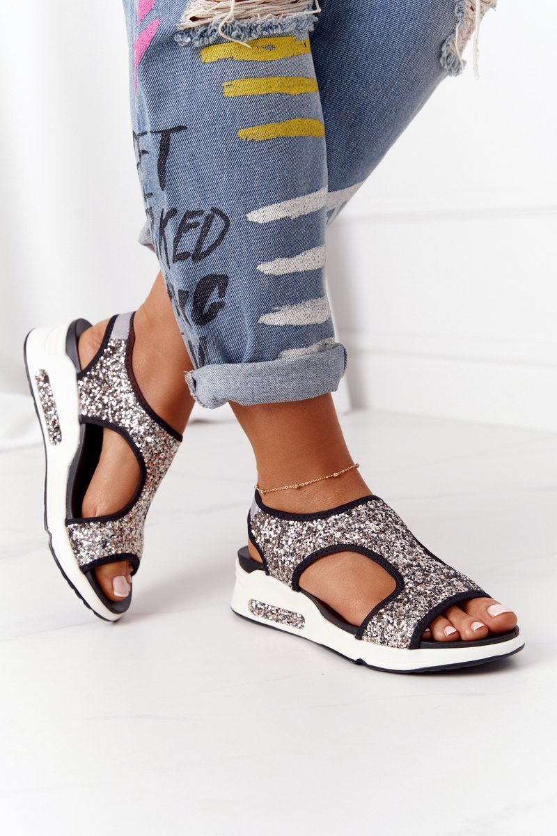 Klínové Nazouvací Sandály Stříbrné Třpytivé Zoey