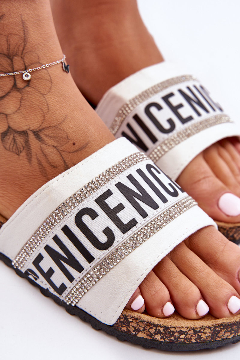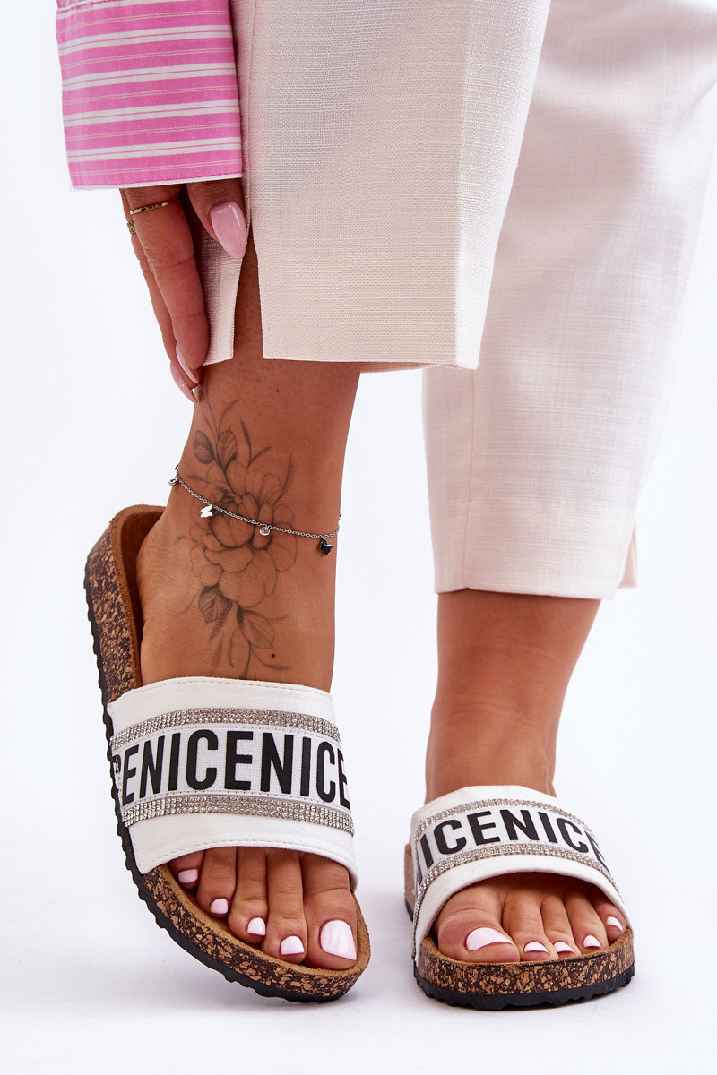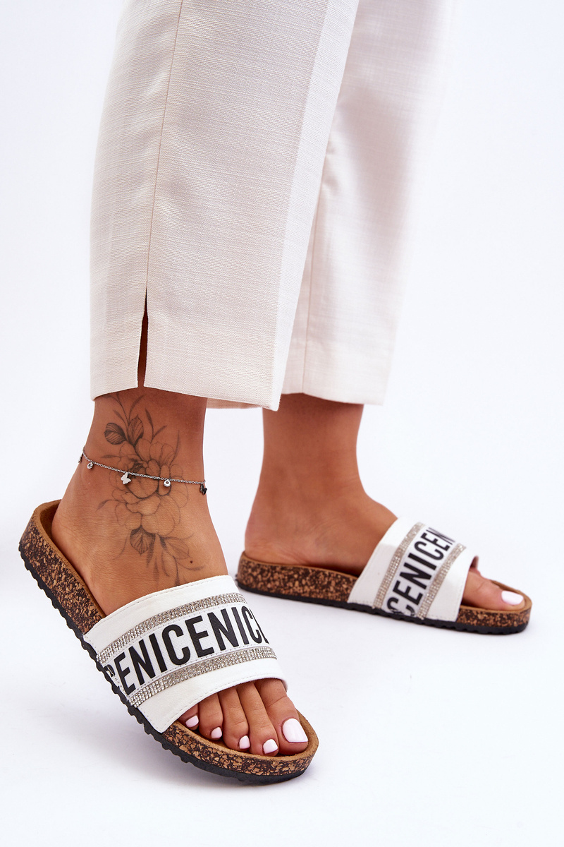 Korkové Sandály S Krystaly Bílé Be Nice