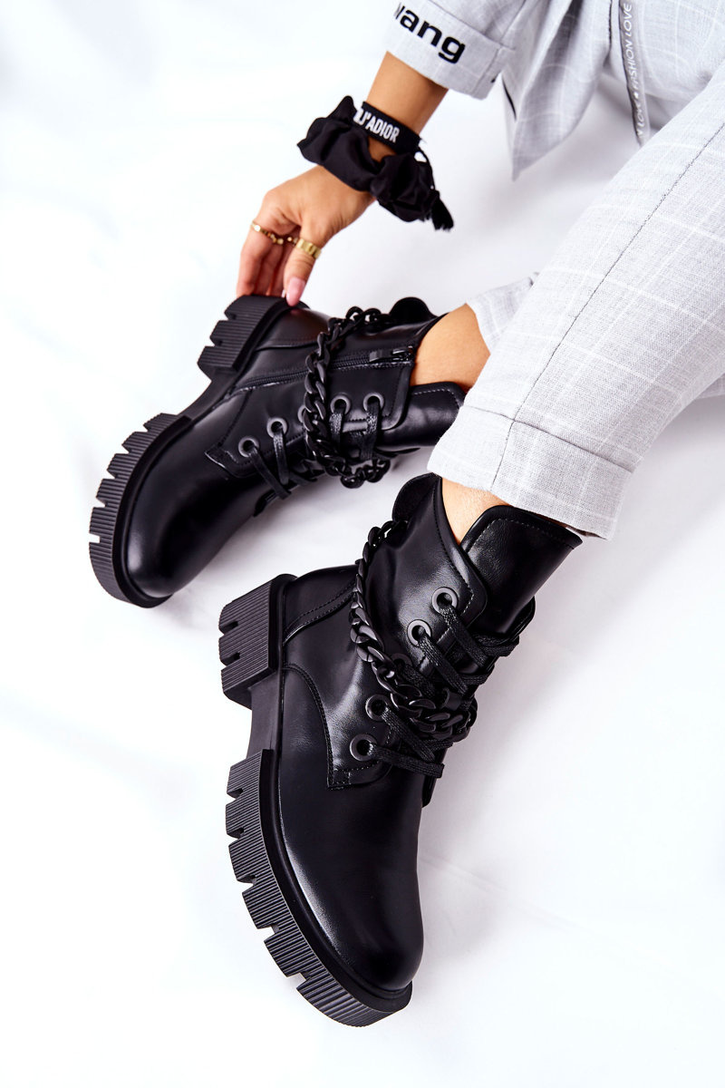 Boty jsou MUST HAVE pro každou ženu! Model Izzy je vyroben z ekologické kůže. Mají ozdobný řetízek i zip a vázání, díky kterému si je můžete přizpůsobit podle svých představ. Díky pevné podrážce se v nich budete cítit stabilně. Při výběru velikosti se řiďte tabulkou velikostí.