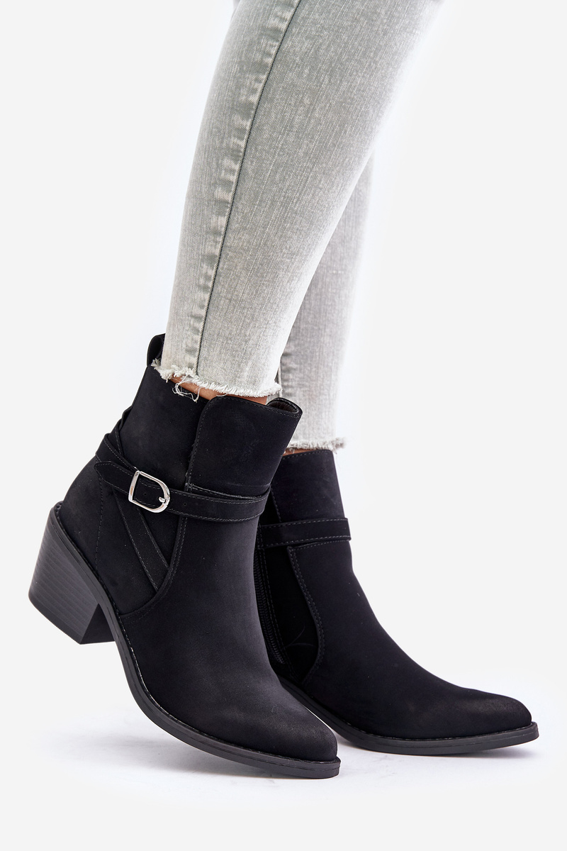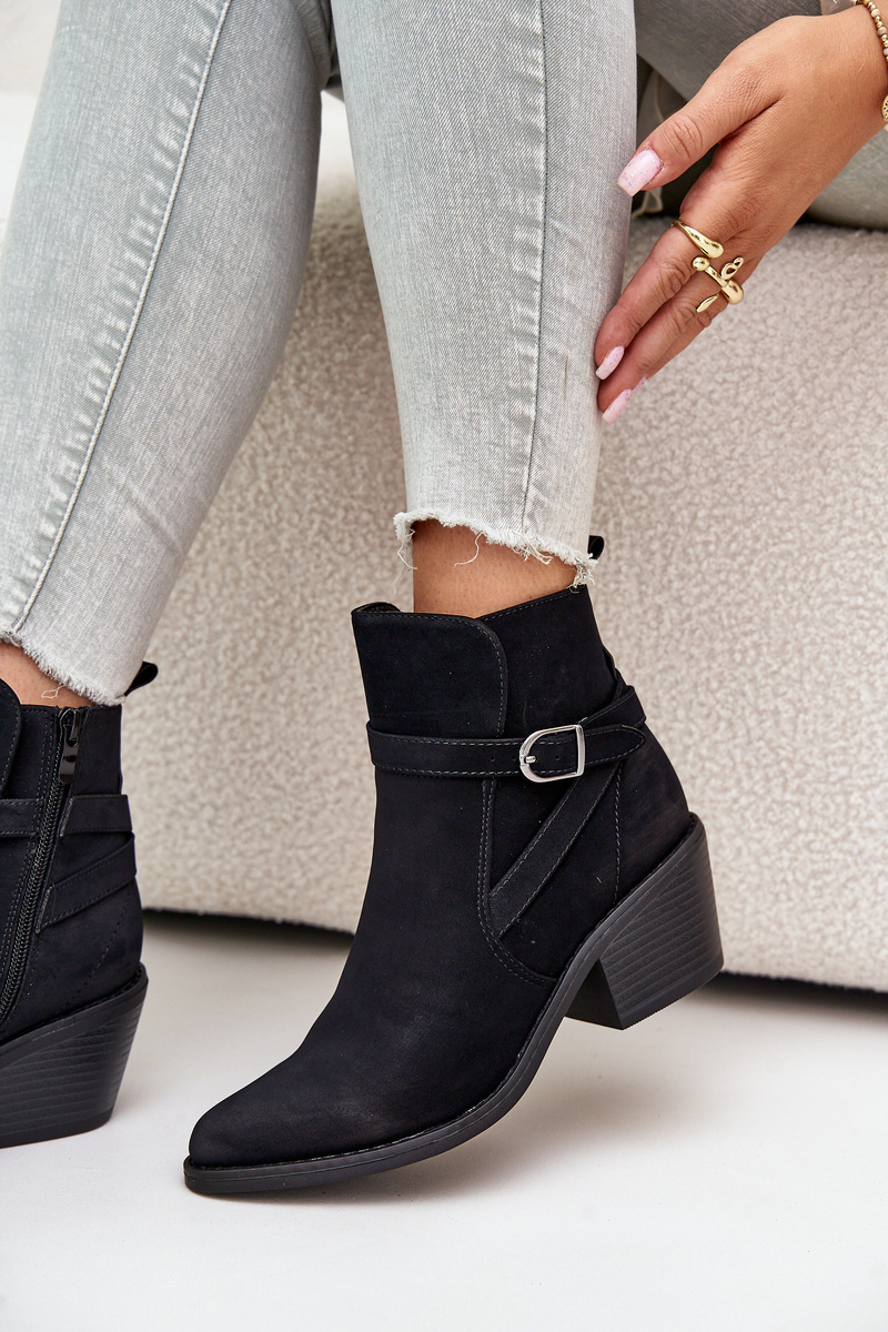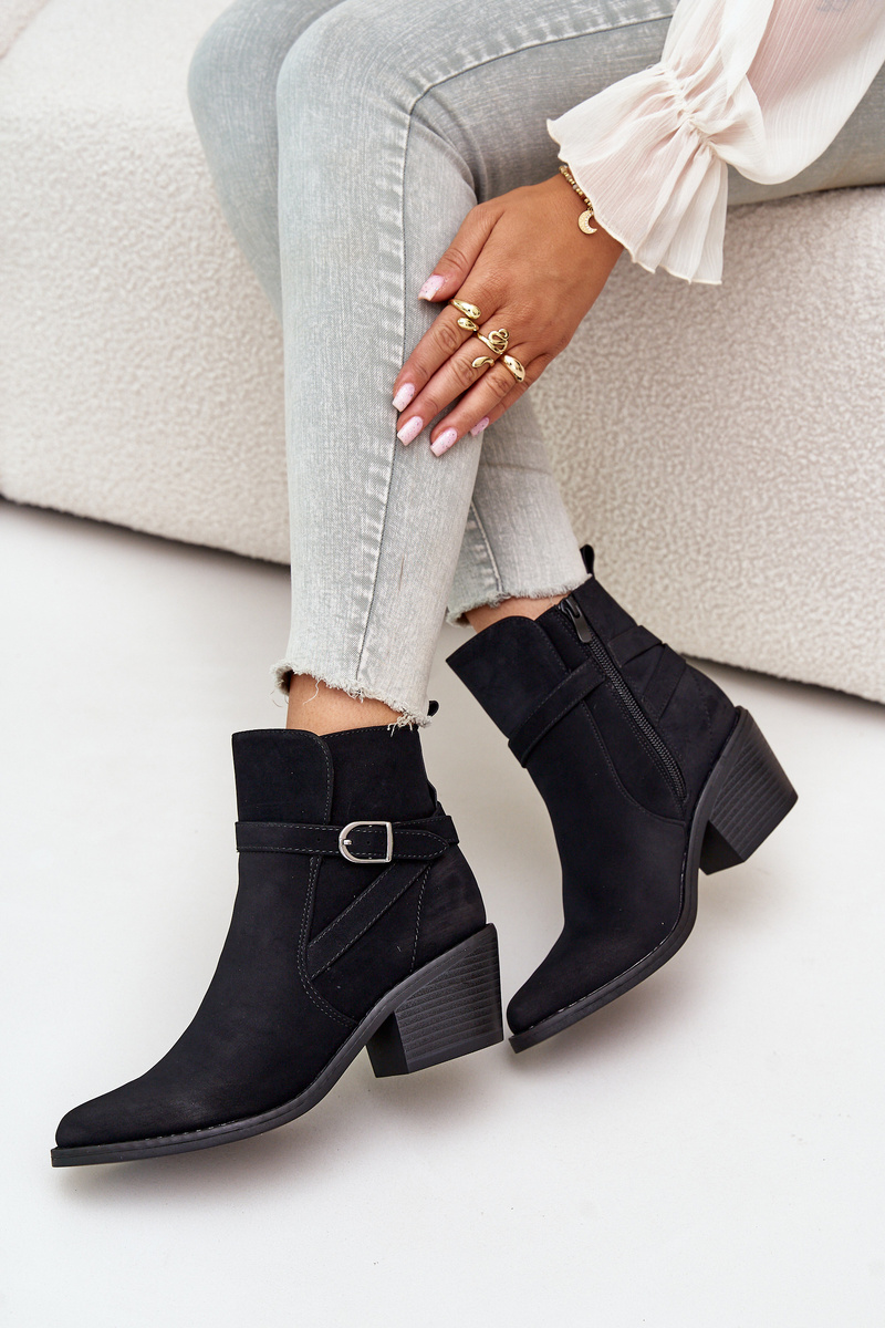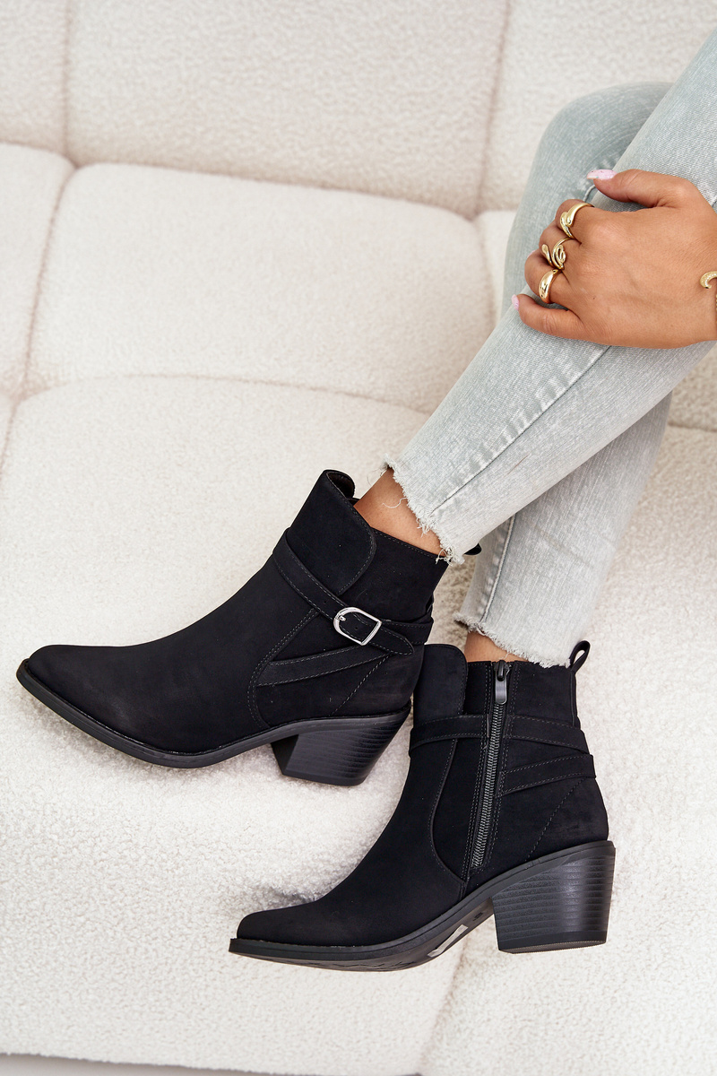 Boty ve stylu kovbojů vyrobené z eko semiše. Usazeny na podpatku ve formě sloupce. Uvnitř zateplené obuvnickou vlnou. Zapínají se na zip. Špičky ve tvaru špice opticky prodlouží nohy. Tento módní styl by rozhodně měl být tvůj! Při výběru velikosti se řiďte tabulkou velikostí.