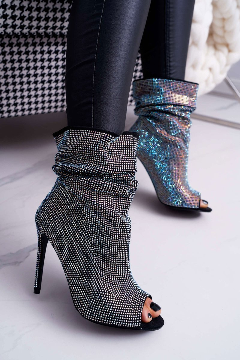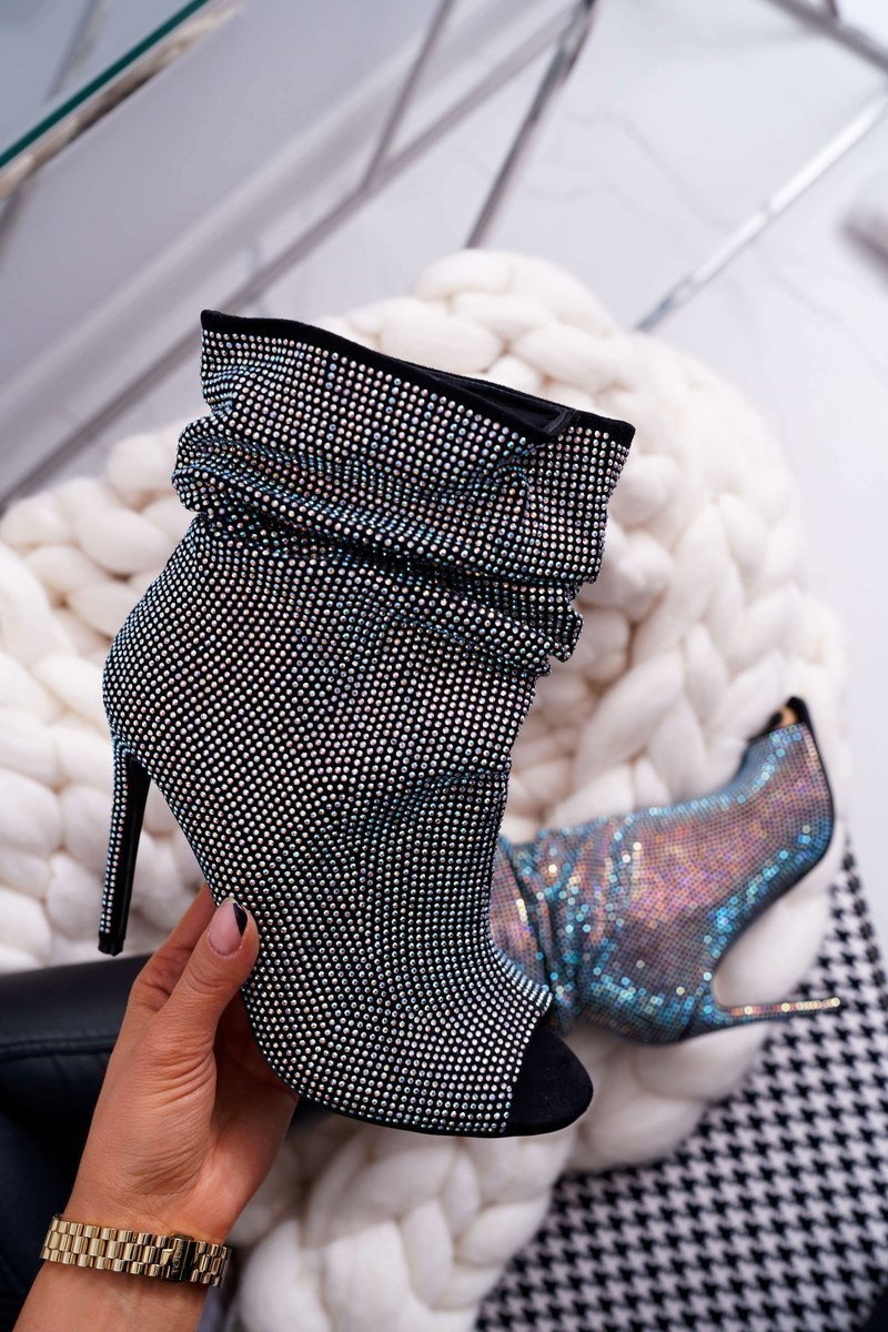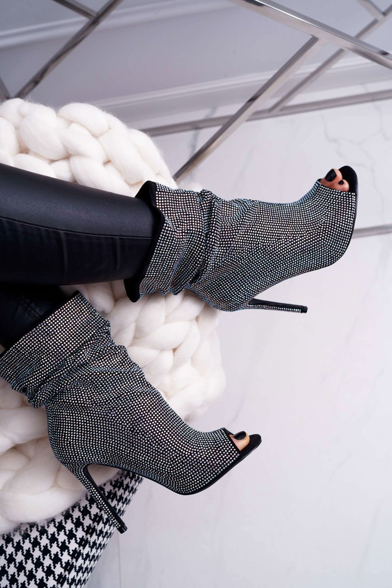 Kotníkové Boty Na Podpatku Se Zirkony Lu Boo Černé