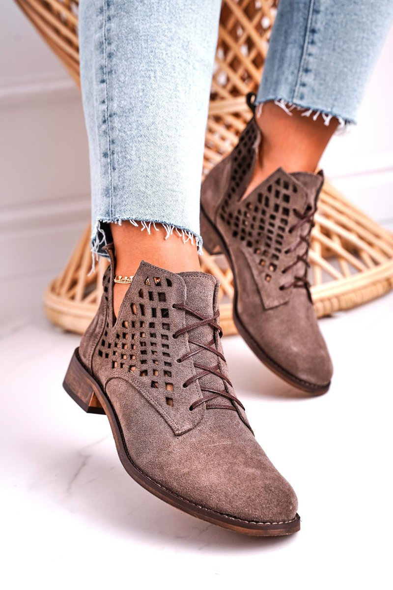 Kotníkové Prolamované Boty Semišové Hnede Susannah
