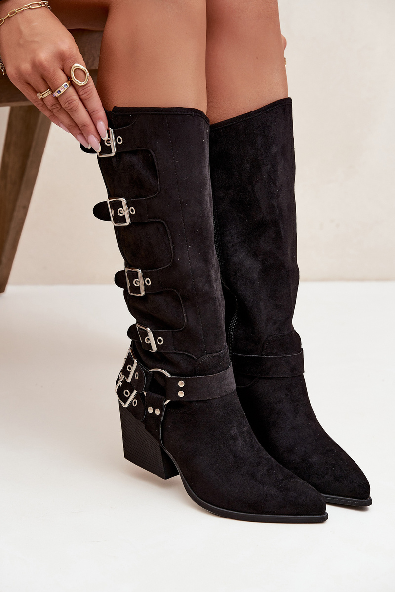 Kozačky Kovbojky na podpatku s přezkami Černé Fivelle