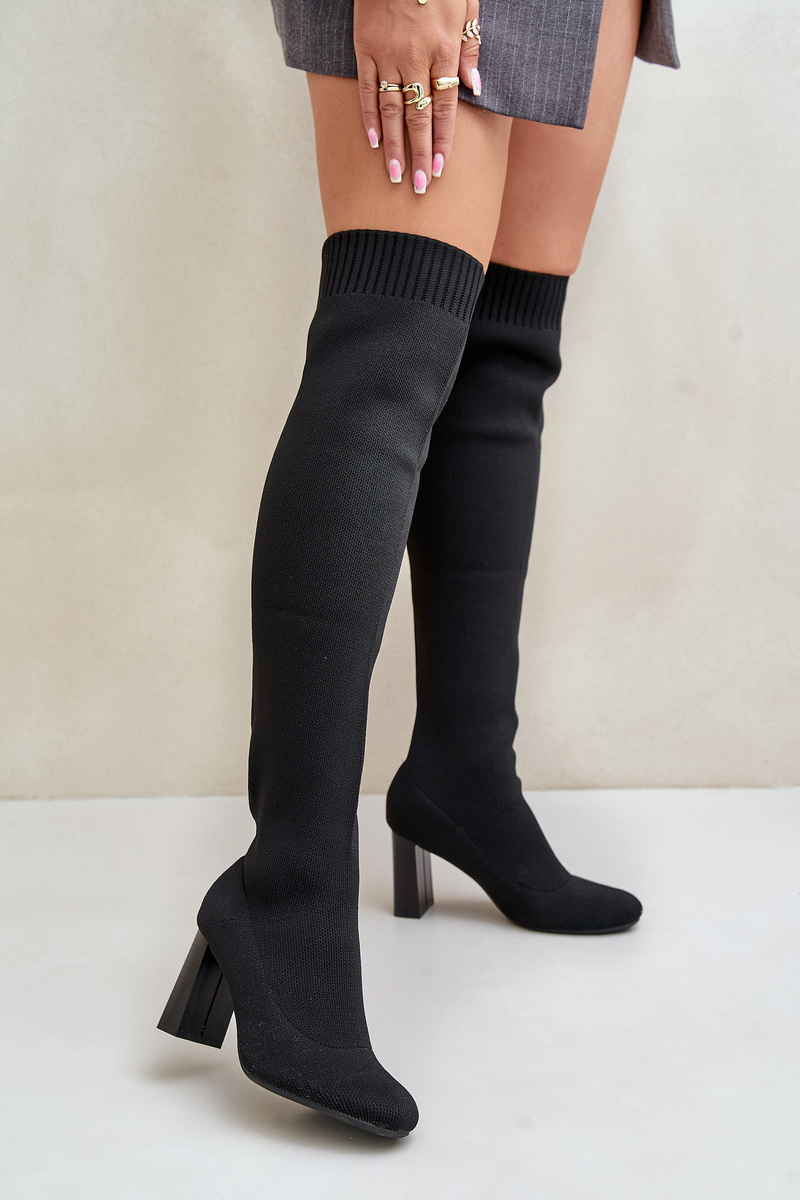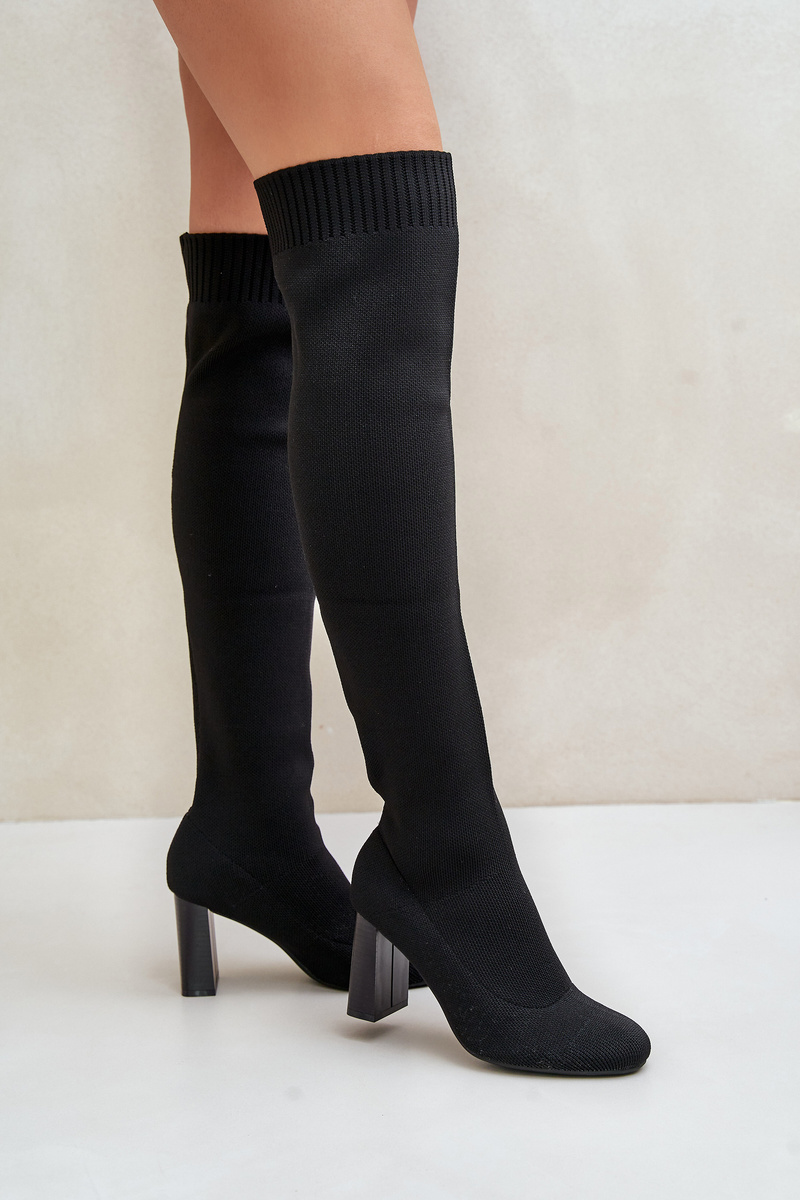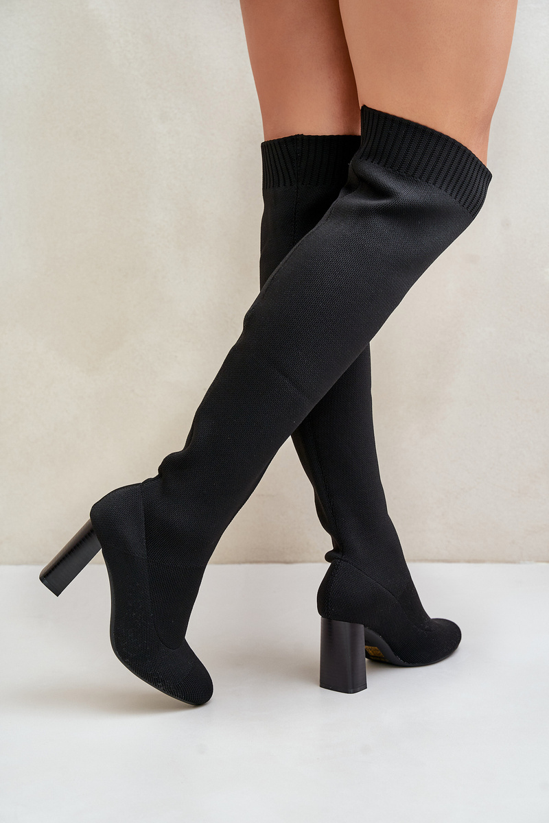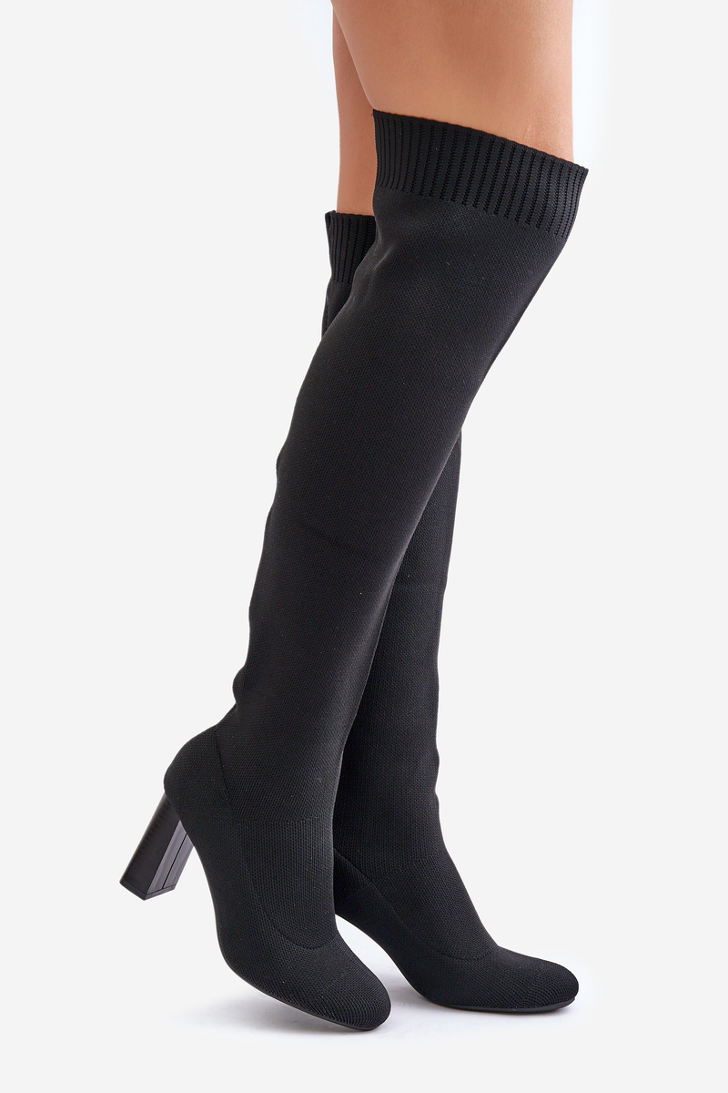 Kozačky Se Školkovou Špicí Nad Koleno Na Podpatku Černé Esanira