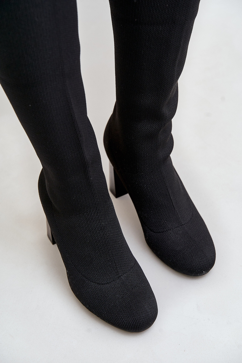 Dámské kozačky s efektní, nad koleno sahající, punčochovou částí. Model je umístěn na stabilním sloupkovém podpatku, který dodává eleganci a prodlužuje siluetu. Zaoblené špičky zajišťují pohodlí při nošení. Vnitřek je zateplen pouze na úrovni chodidla. To je stylové a módní řešení, které se skvěle hodí k šatům a sukním! Při výběru velikosti se řiďte tabulkou velikostí.