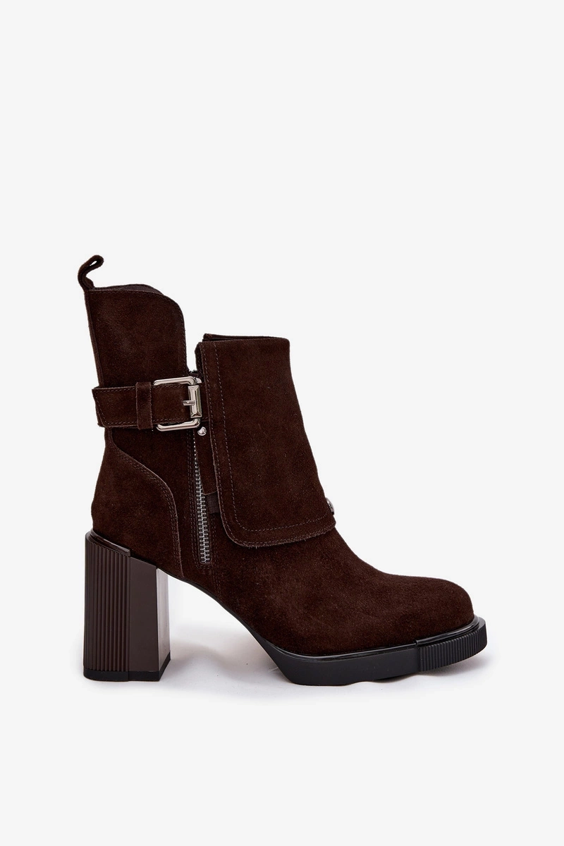 Kozačky z přírodního semiše na jehlovém podpatku s přezkou Vinceza 91152 čokoládové