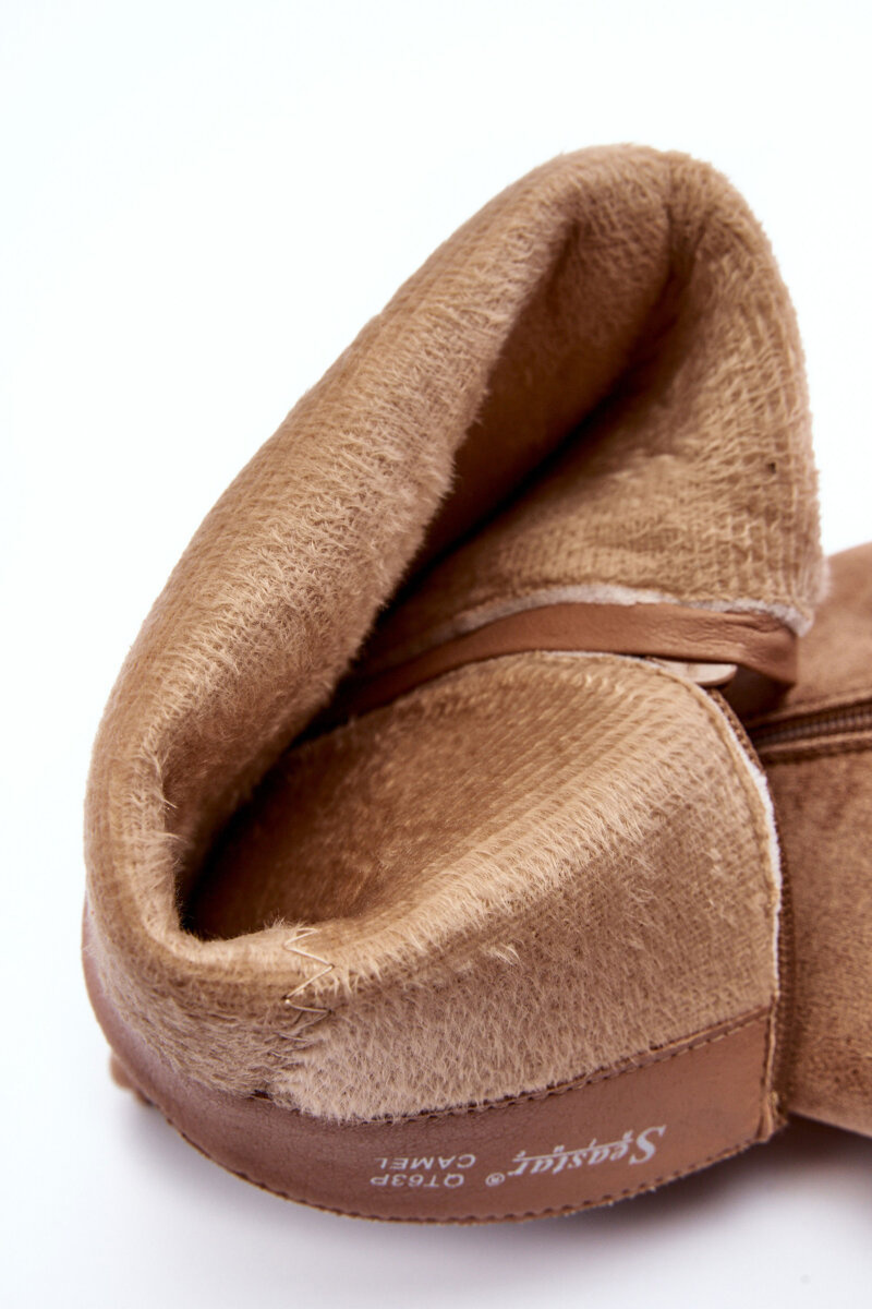 Kotníkové kozačky z eko semiše. Podpatky ve tvaru sloupku s zlatým zrcadlovým prvkem. Model se zapíná na zip. Vnitřek je izolován obuvní výplní. Navíc je špička tohoto obuvi zesílena. Měkká vložka zajišťuje pohodlné nošení. Tento model bude skvěle fungovat v mnoha stylu! Při výběru velikosti se řiďte tabulkou velikostí.