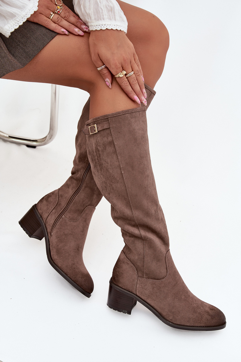 Kozaki před koleno eko semiš na sloupku Vinceza 58332 tmavě béžové