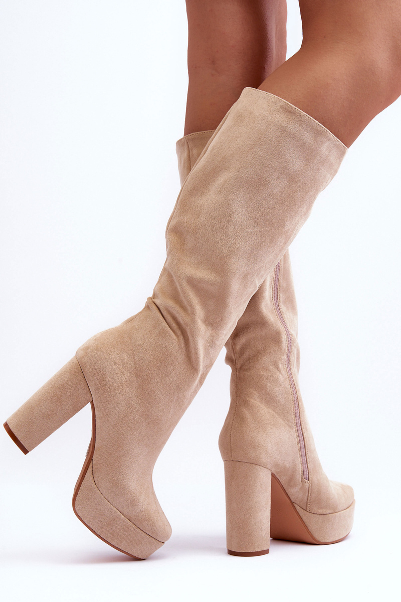 Kozaky Před Kolenem Na Podpatku A Platformě Bežové Baldrema