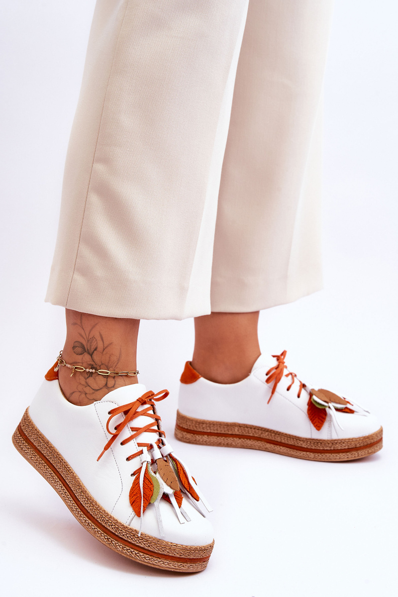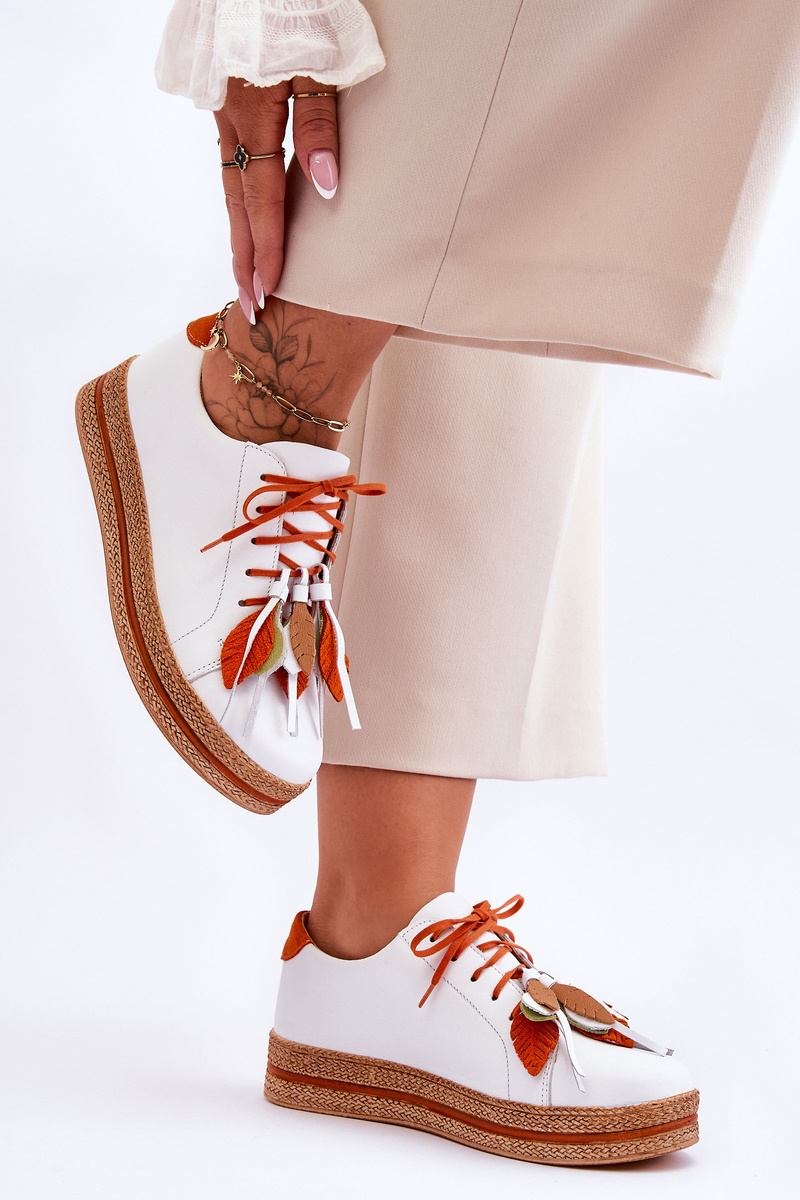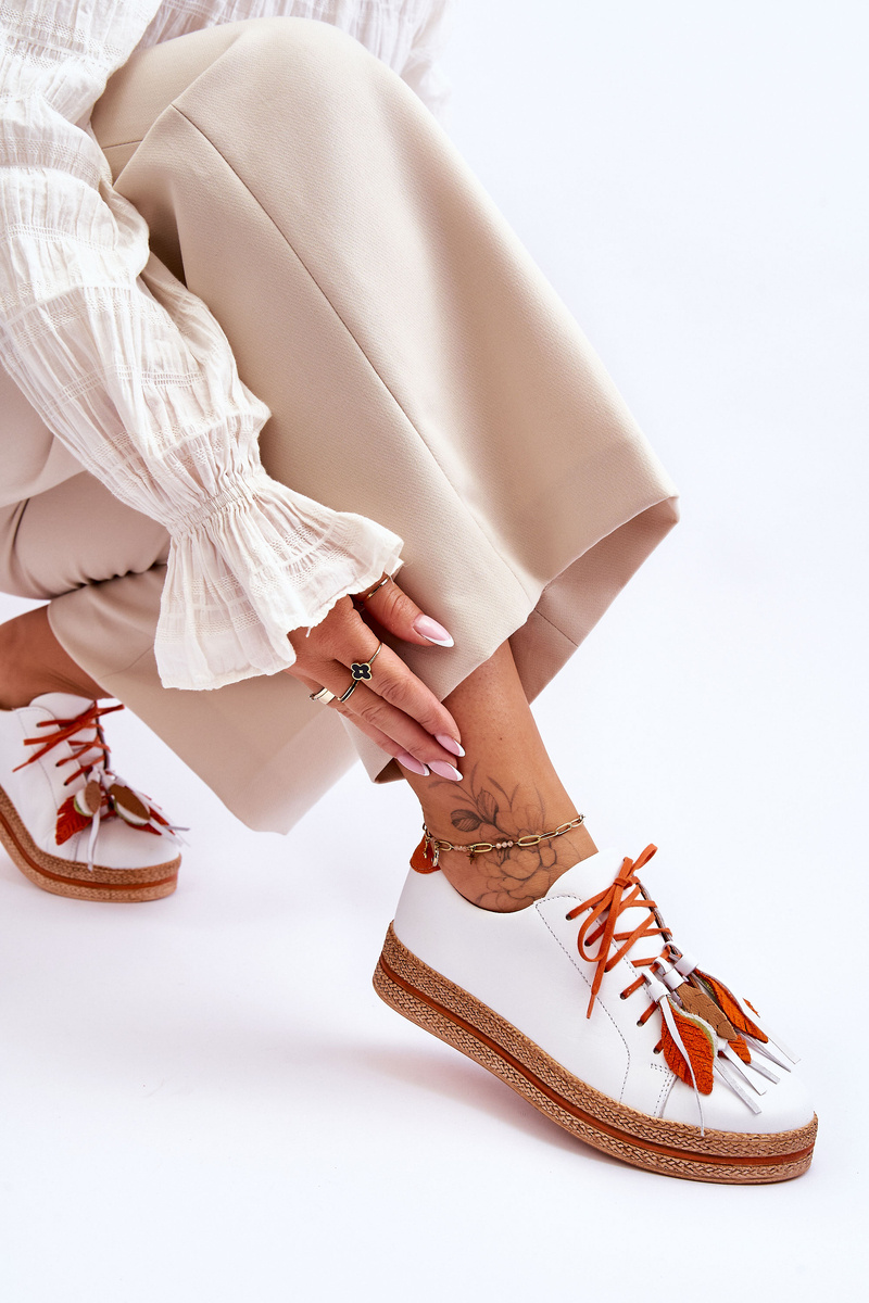 Nádherný střih bot od firmy Maciejka. Vyrobeno z přírodní kůže. Měkká kožená stélka je ideální pro použití a zajišťuje maximální pohodlí po celý den. Tenké tkaničky jsou zdobeny třásněmi a listy, které lze také sundat. Platforma jemně nadzvedne postavu. Tyto boty dokonale kombinují sportovní a ležérní styl! Při výběru velikosti použijte tabulku velikostí.