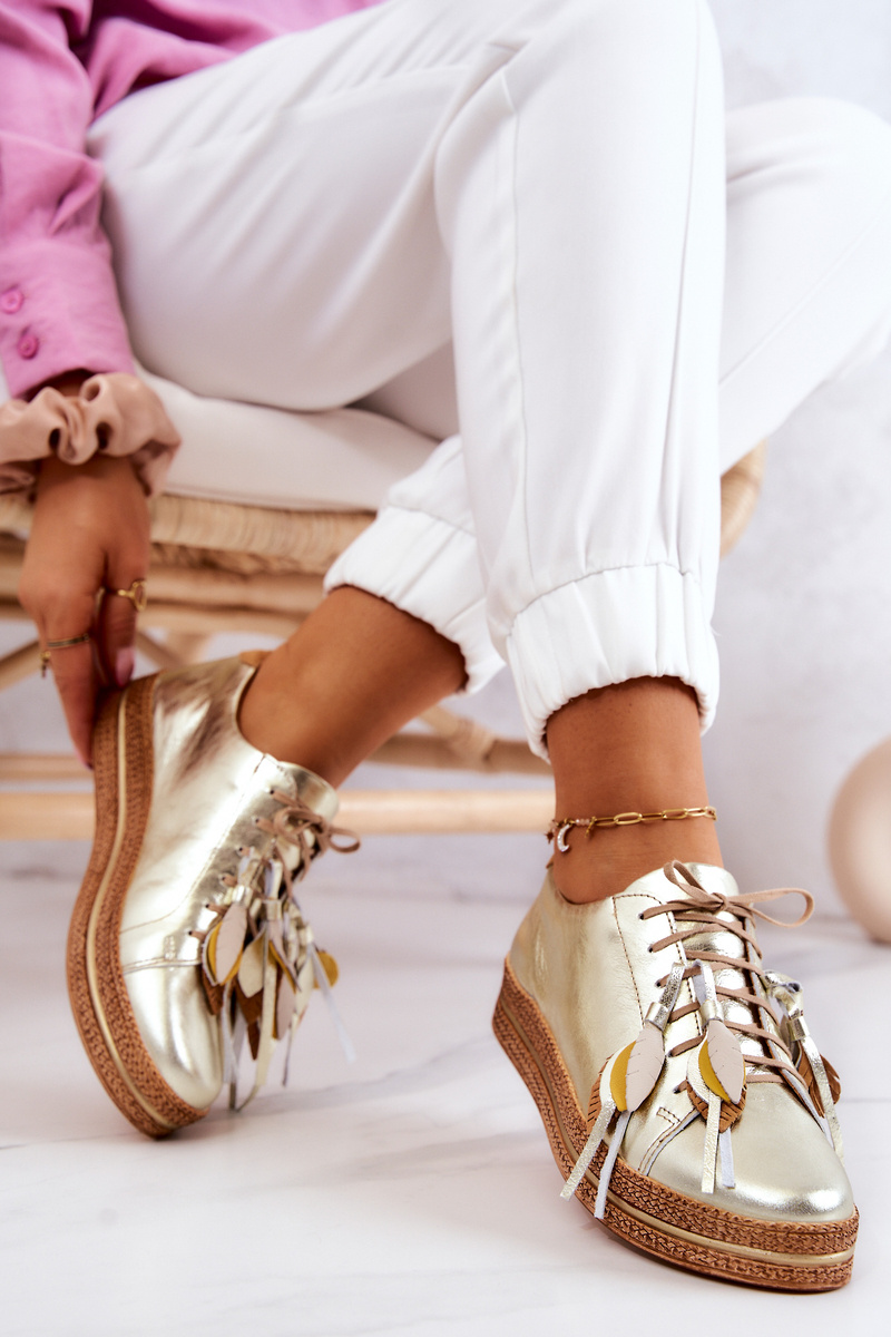 Nádherný střih bot od firmy Maciejka. Vyrobeno z přírodní kůže. Měkká kožená stélka je ideální pro použití a zajišťuje maximální pohodlí po celý den. Tenké tkaničky jsou zdobeny třásněmi a listy, které lze také sundat. Platforma jemně nadzvedne postavu. Tyto boty dokonale kombinují sportovní a ležérní styl! Při výběru velikosti použijte tabulku velikostí.