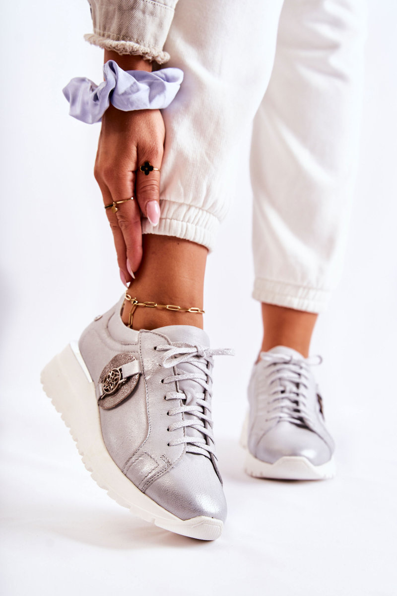 Kožená sportovní obuv na klínku Maciejka 05492-11 Stříbro