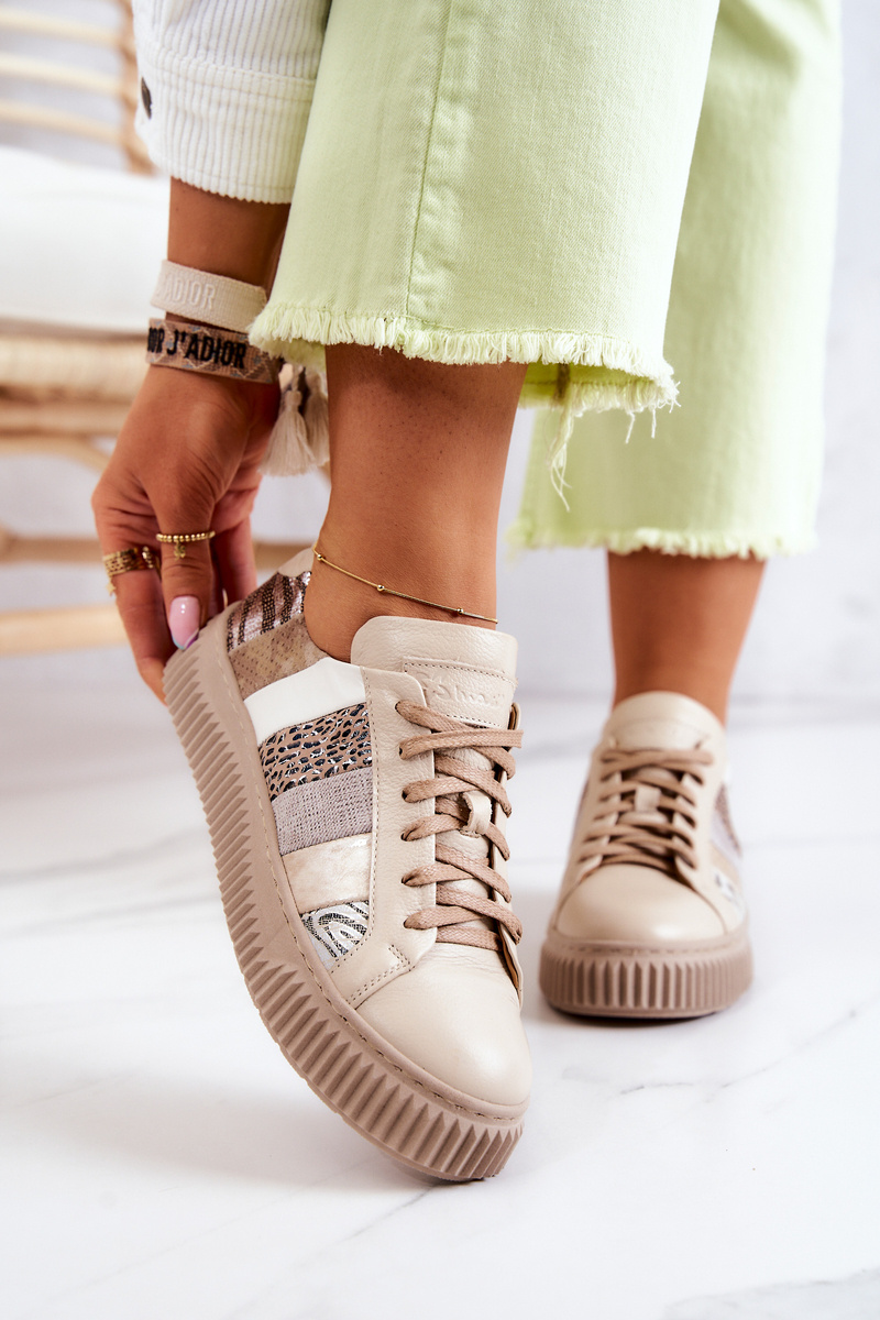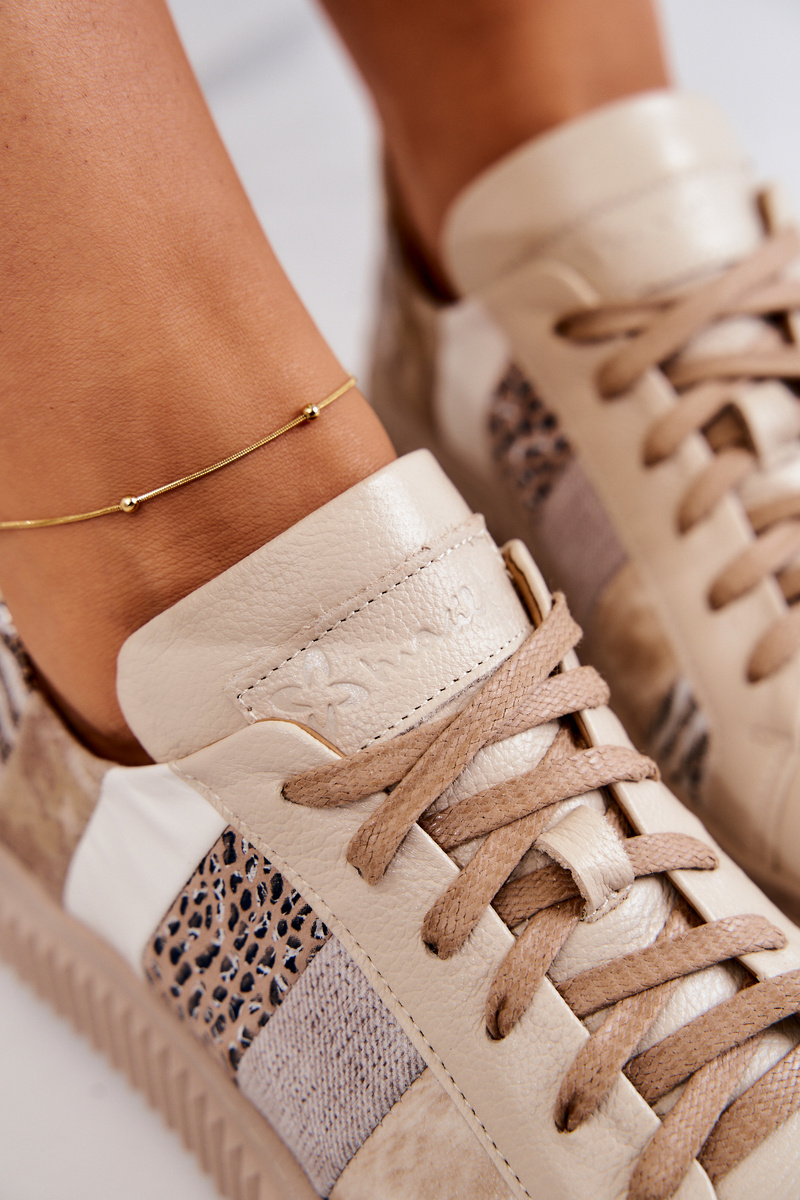 Kožená sportovní obuv na platformě Maciejka 05482-04 Béžová