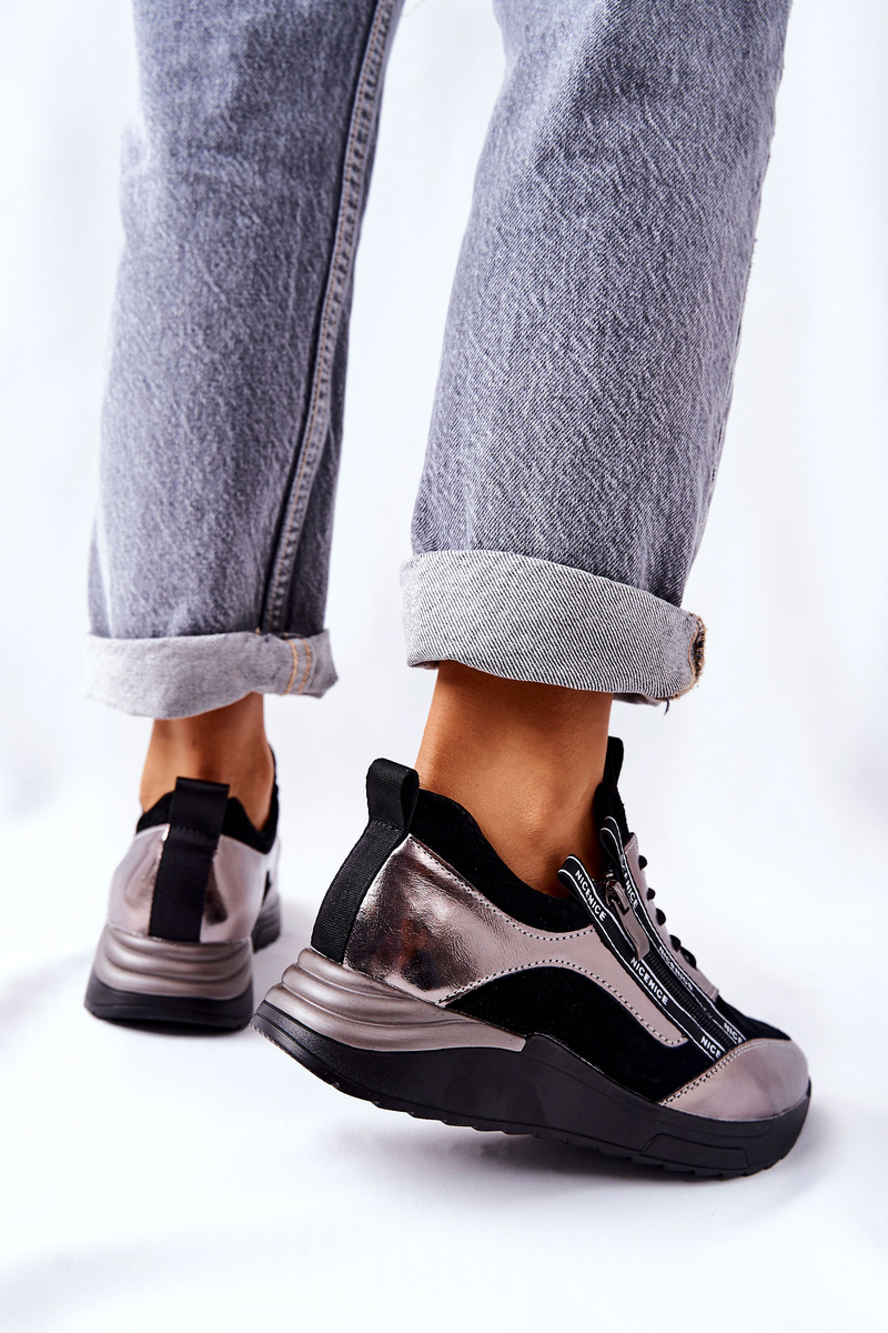 Kožená Sportovní Obuv Tenisky černo-stříbrný Minor