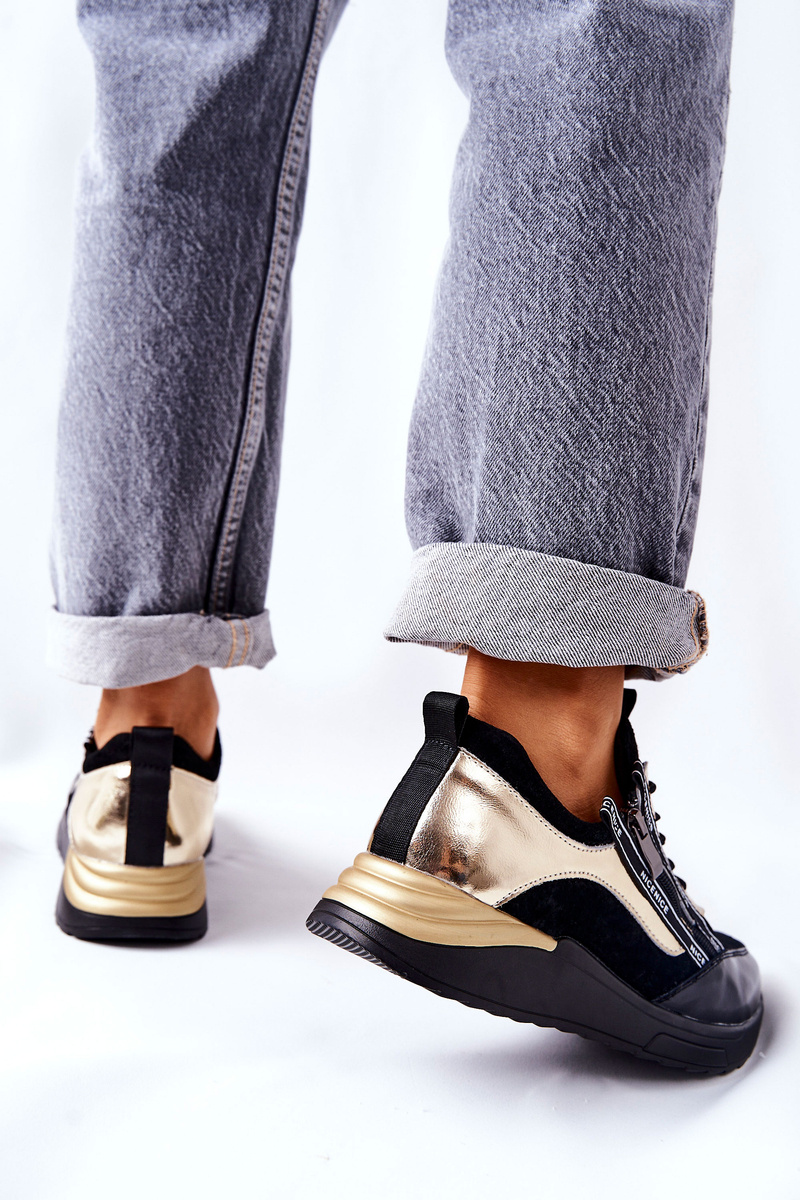 Kožená Sportovní Obuv Tenisky černo-zlaté Minor