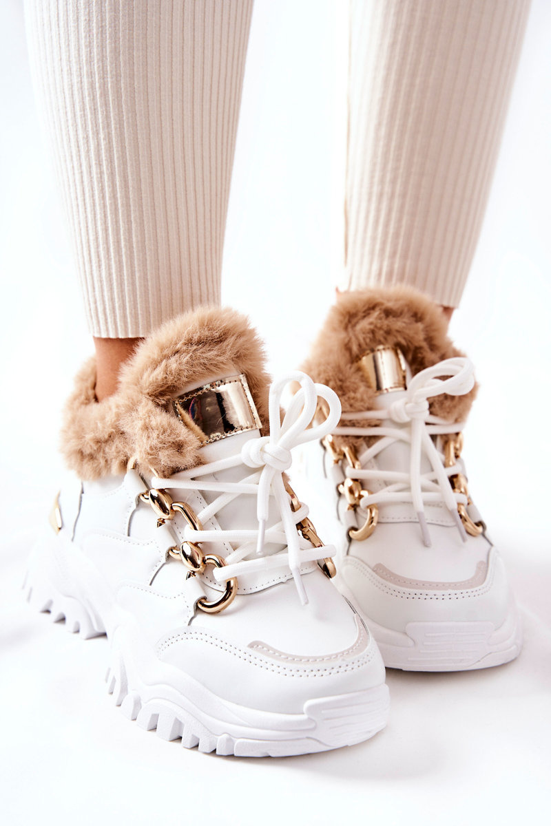 Sportovní obuv v zimním vzhledu. To je skvělé řešení! Na horní straně jsou vyrobeny z ekologické kůže. Svrchní a vnitřní strana je potažena hřejivou umělou kožešinou. Klasický střih se šněrováním. Tento model vyniká dekorativními prvky! Musíte je mít, nečekejte, až zmizí! Při výběru velikosti se prosím řiďte tabulkou velikostí.