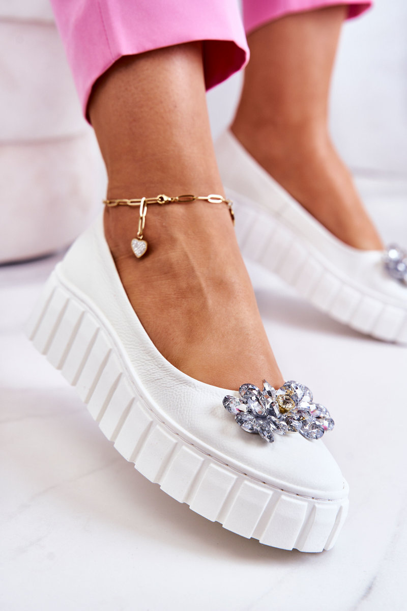 Kožené Baleríny Na Platformě S Ornamentem Bílým Ladette