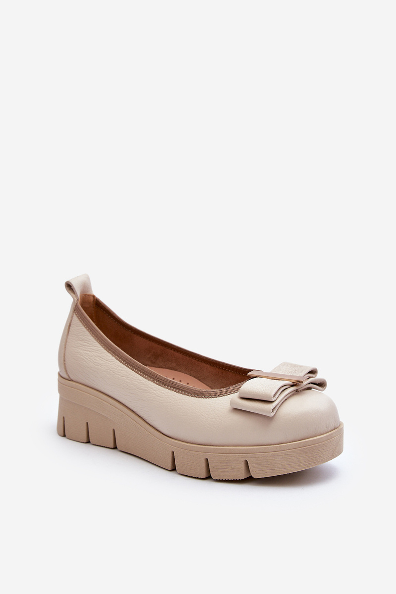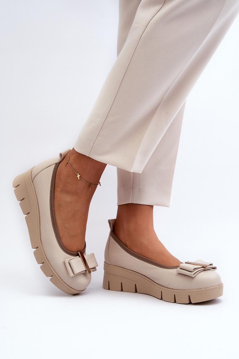 Kožené baleríny na platformě s ozdobou krémové Lewski 3384