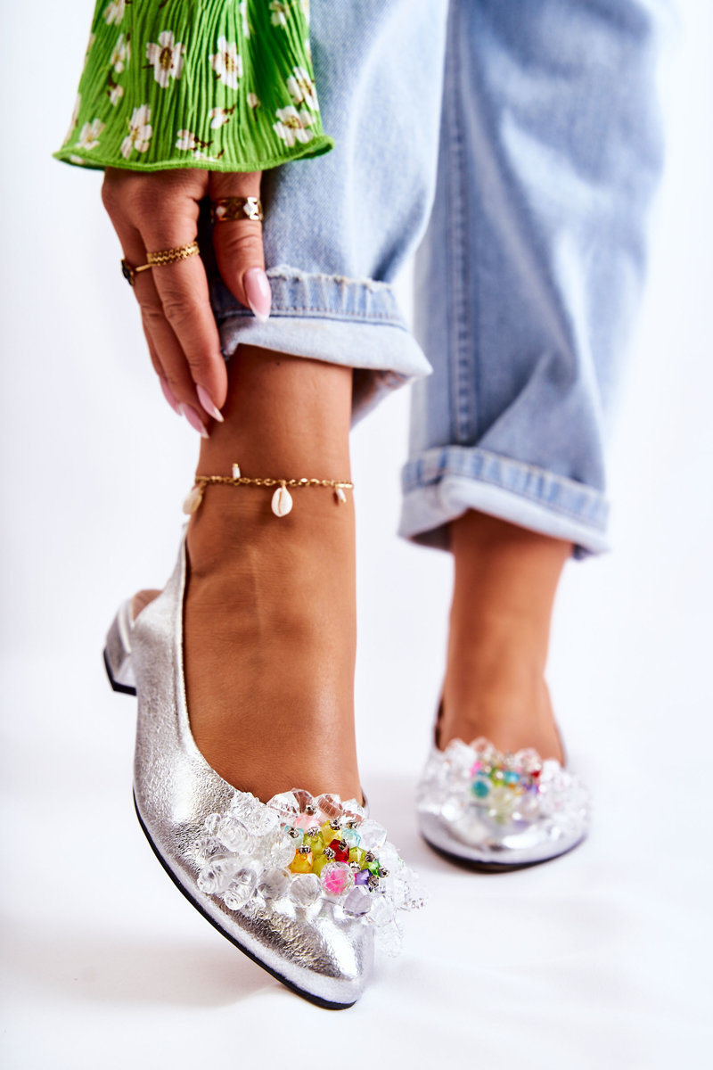 Kožené Baleríny Na Vysokých Podpatcích Se Dekorací Stříbrne Elena