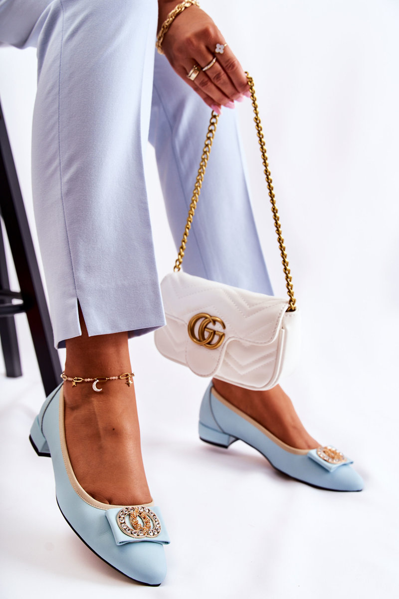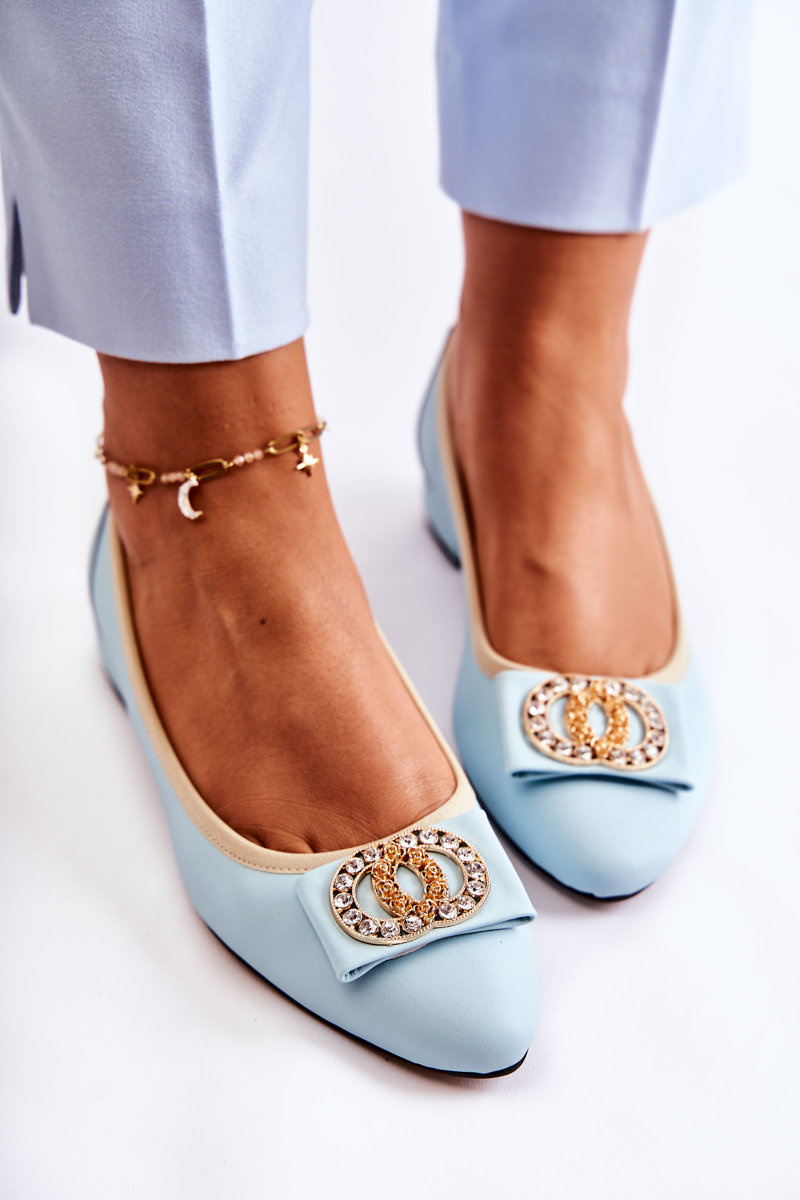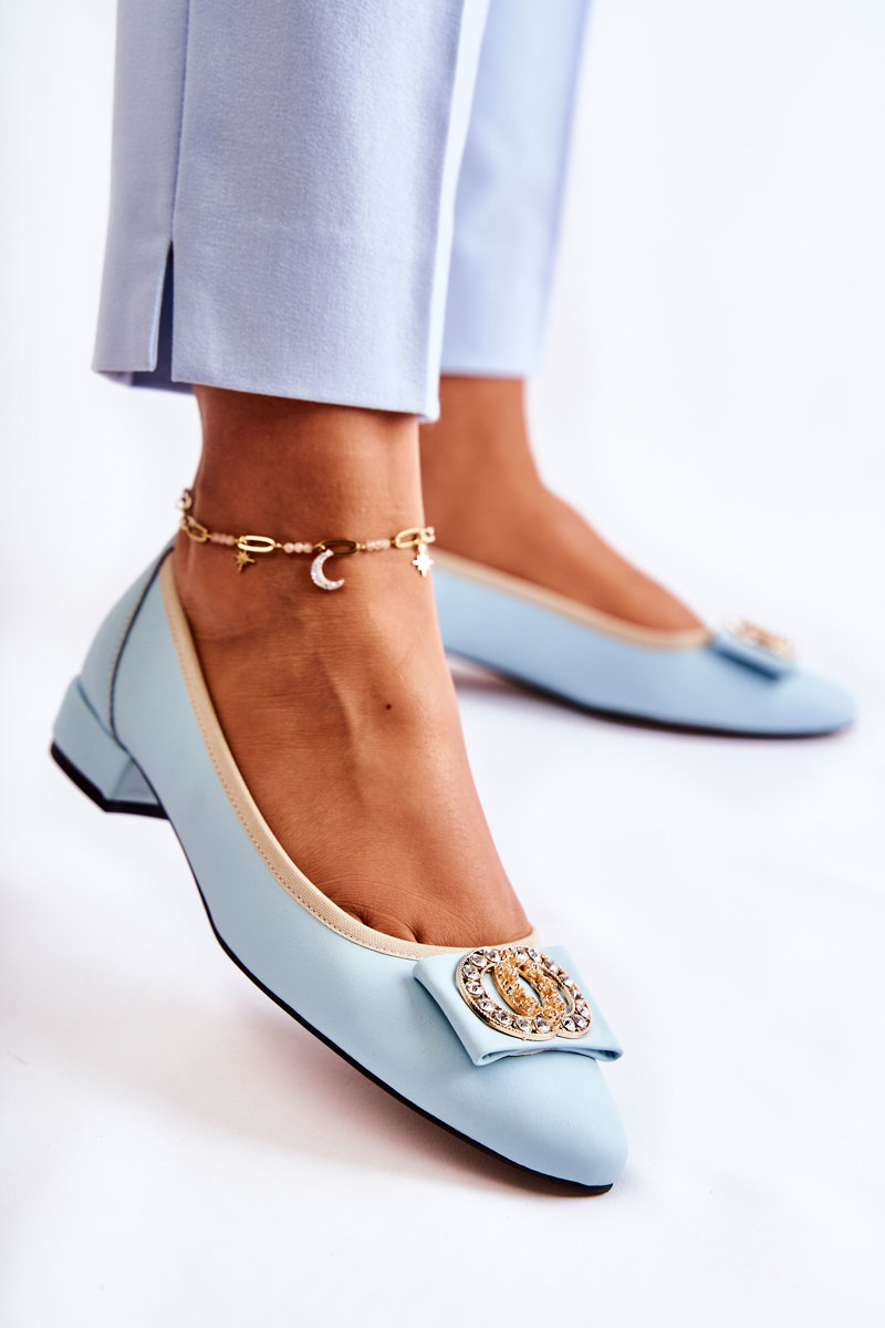 Kožené Baleríny S Bílou A Dekorací modre Joliet