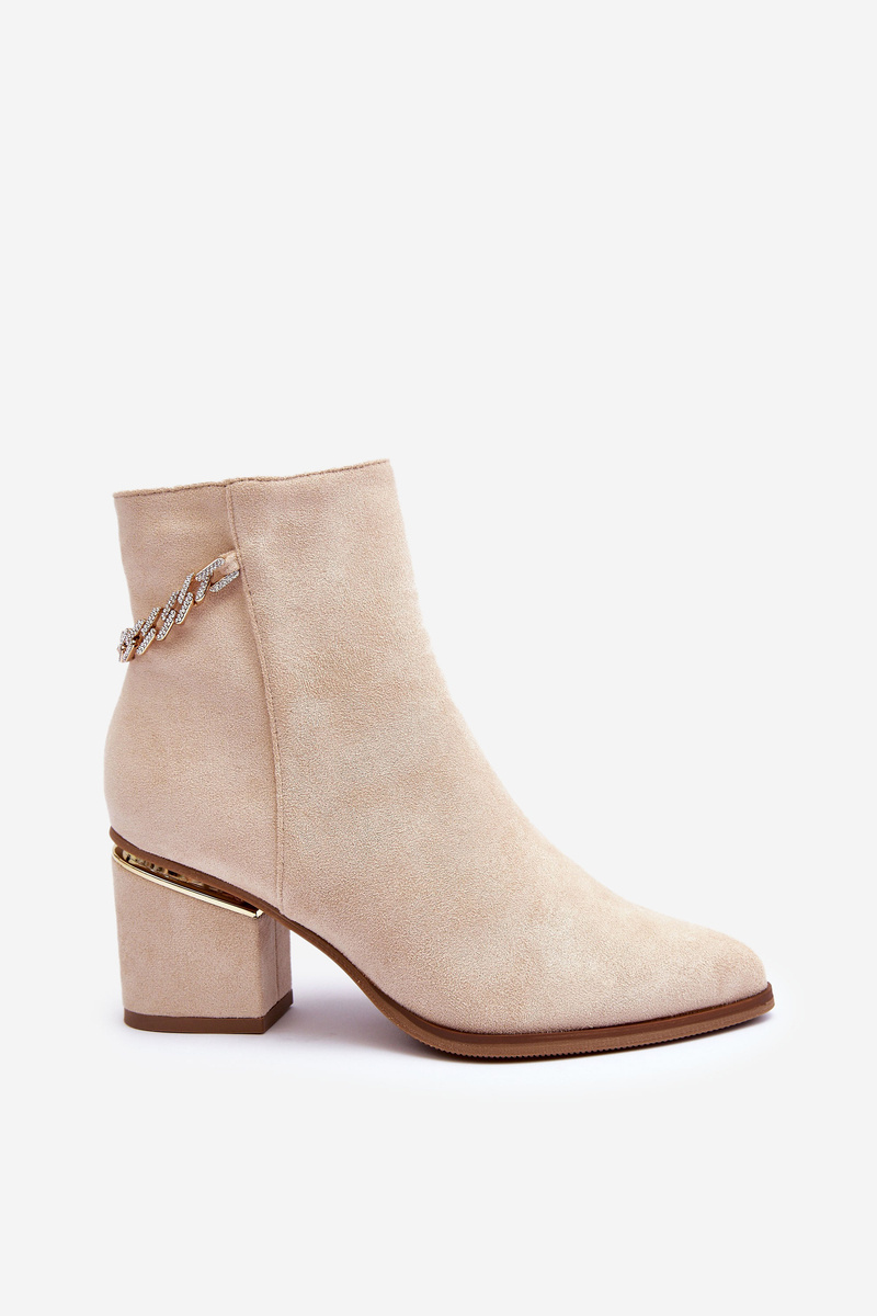 Kožené Botky Na Podpatku S Bižuterní Ozdobou Bežové Jadirel