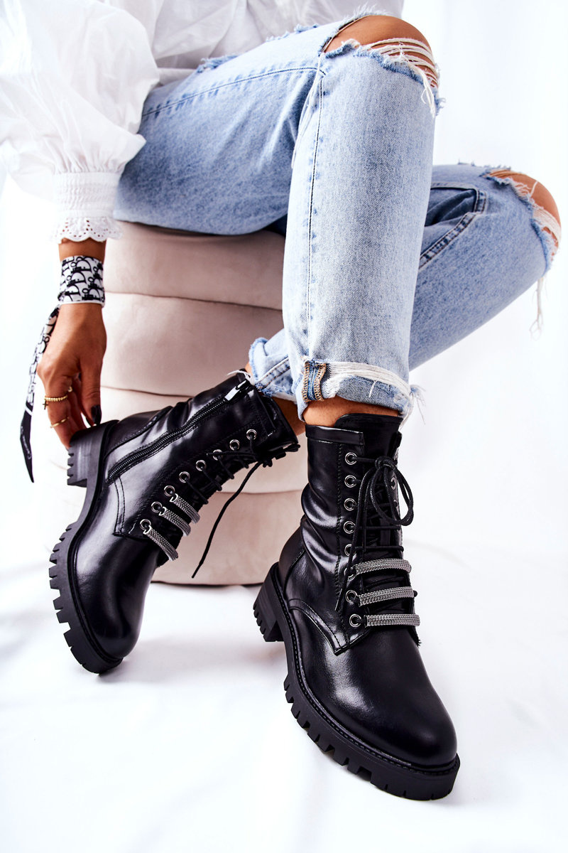 Boty jsou vyrobeny z ekologické kůže. Mají vazbu s ozdobnými kovovými destičkami a zip pro snadné oblékání. Uvnitř jsou boty zateplené přikrývkou příjemnou na dotek. Budou ideální pro podzimní stylizace. Nezapomeňte si prohlédnout celou naši nabídku bot!Výběr velikosti naleznete v tabulce velikostí.