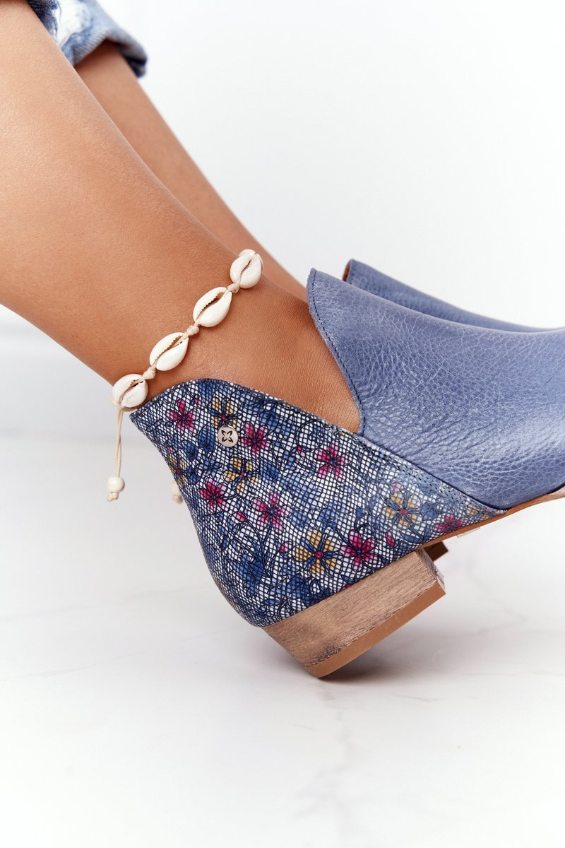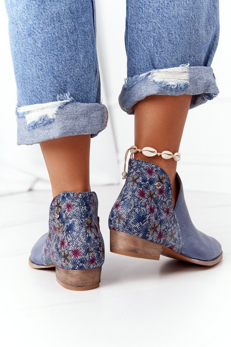 Kožené Boty Maciejka Tmavě Modré S Květinami 04091-64