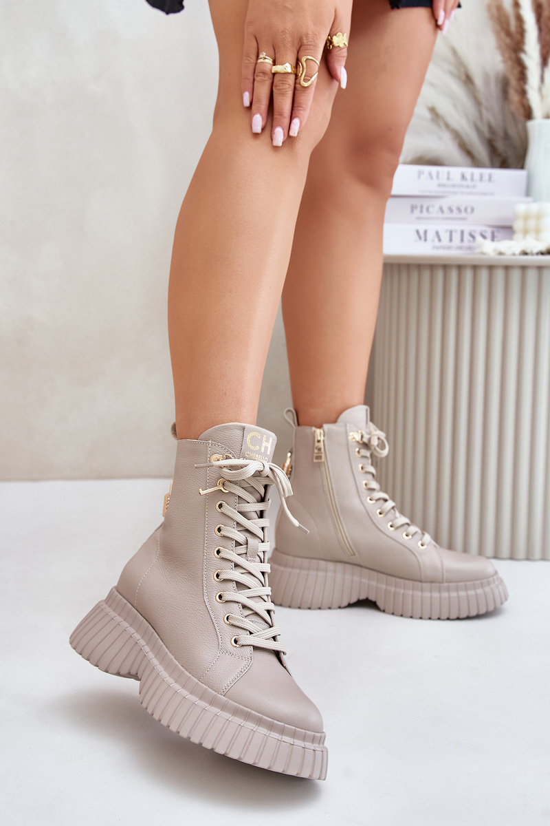 Kožené Boty Na Platformě Na Zip S Dekorativním Zámkem CheBello 4517 Béžové