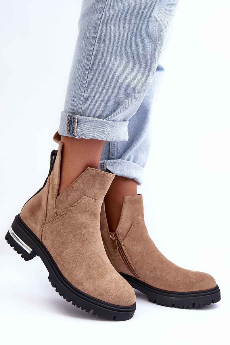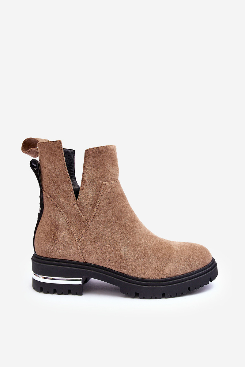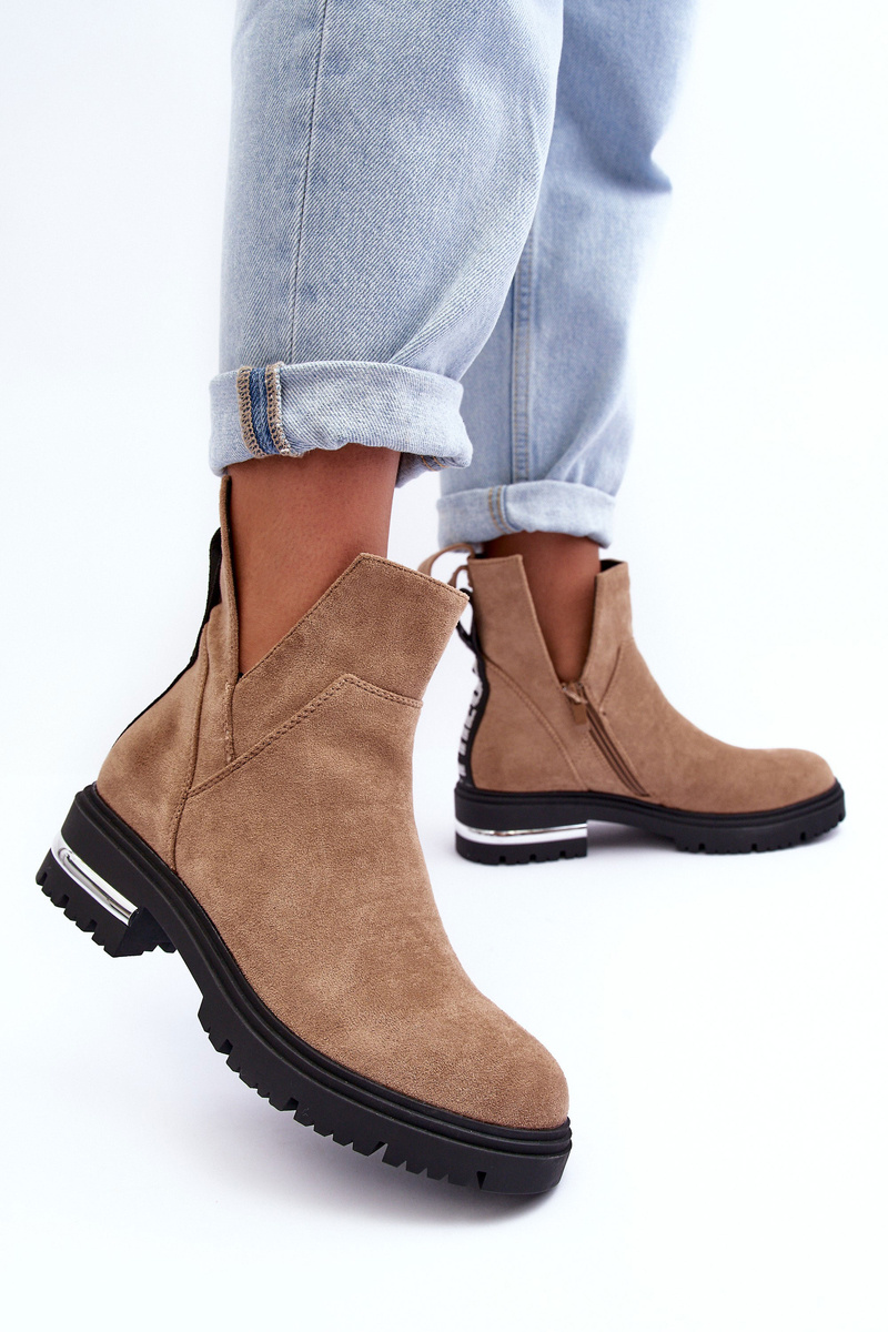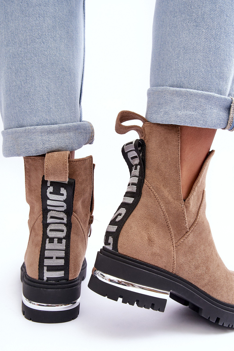 Dámské boty s výřezy. Vyrobeno z ekologického semiše. Osazené na podpatku s zrcadlovým prvkem. Upevněné na zip. Vnitřek je zateplený obuvnickou dekou. Na zadní straně horní části je nápis. Nečekej, až zmizí a kup si je dnes! Při výběru velikosti se řiďte tabulkou velikostí.