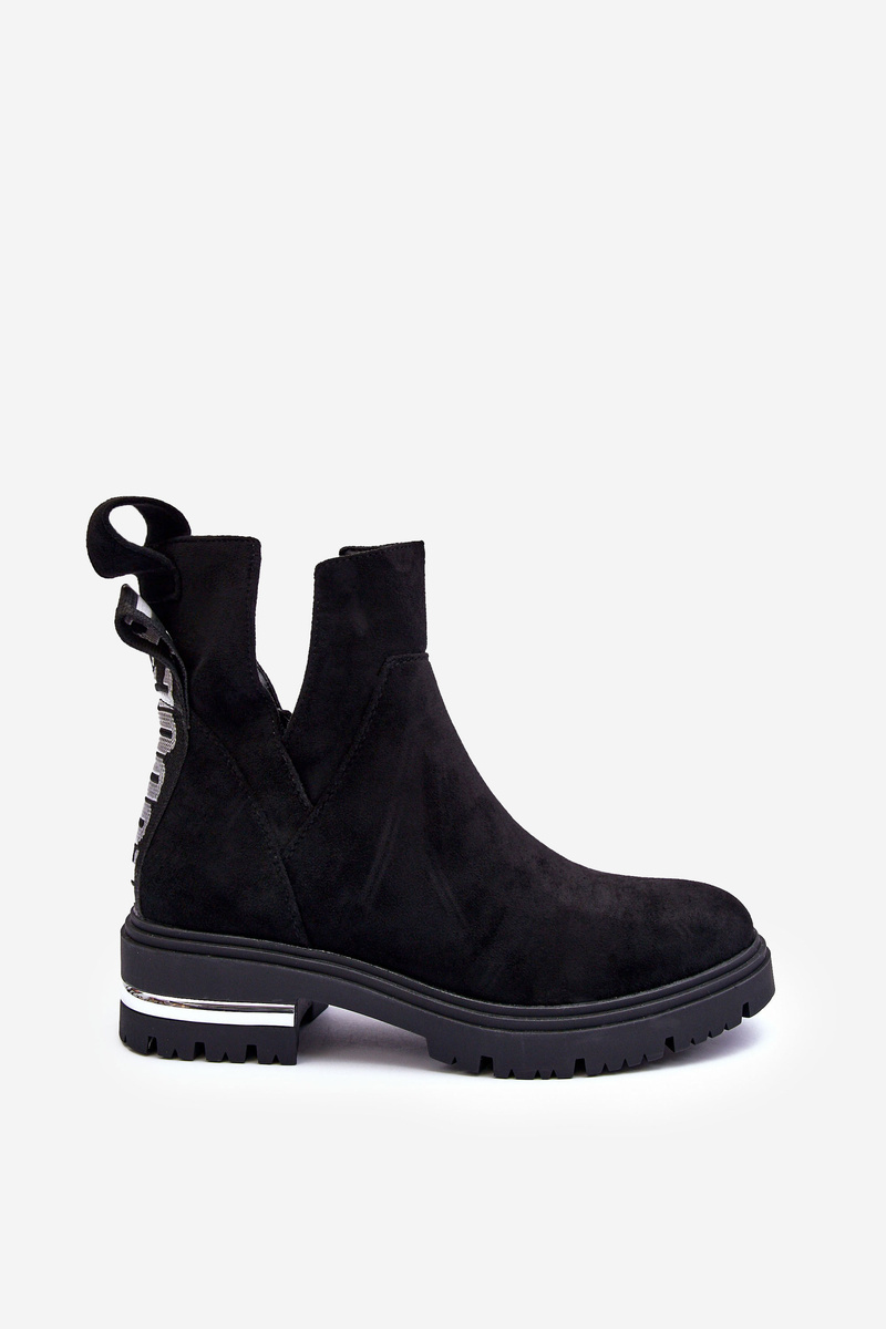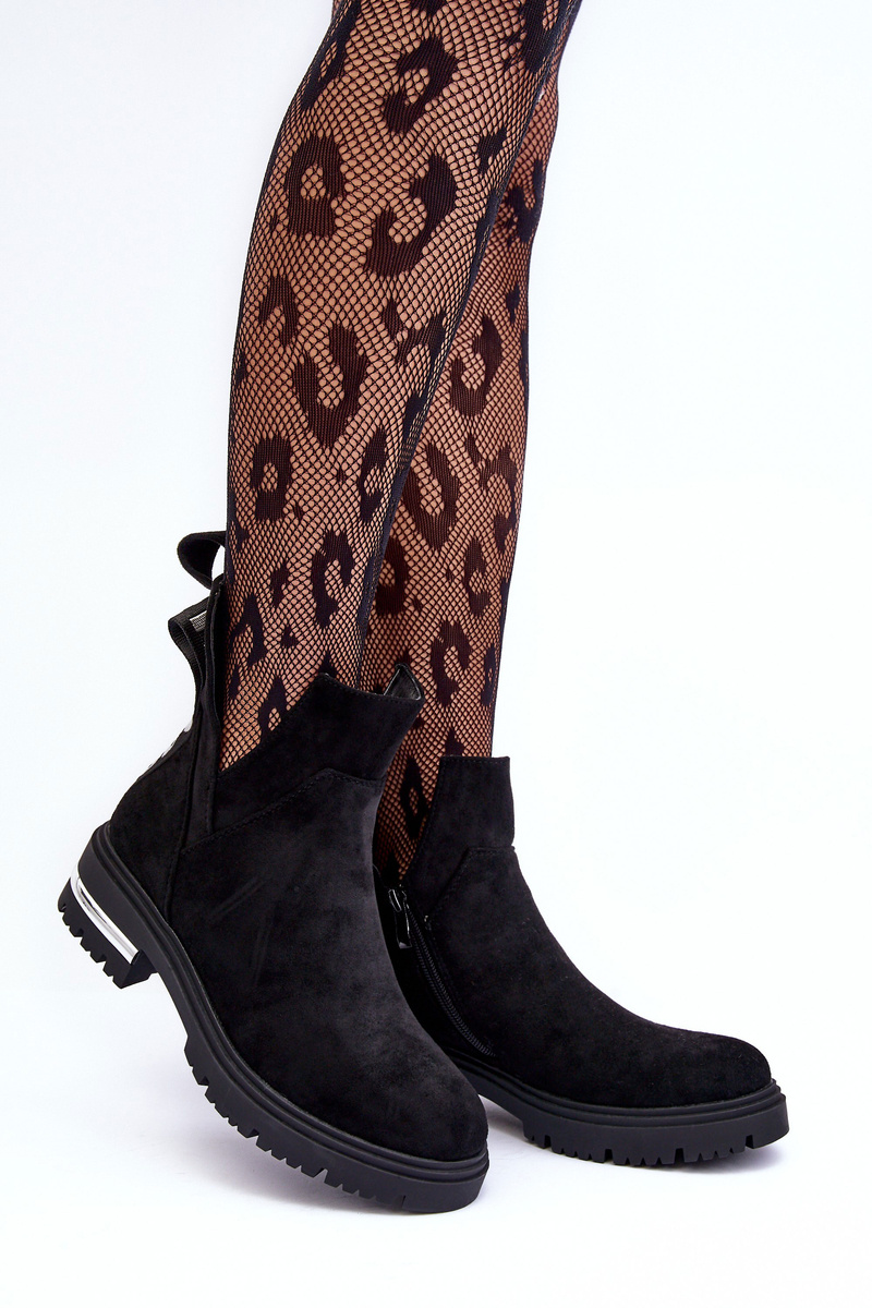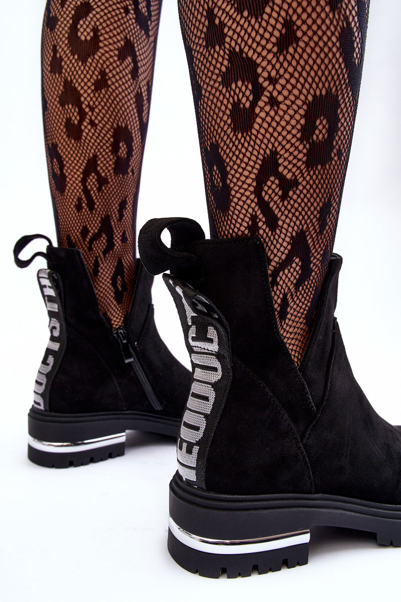 Dámské boty s výřezy. Vyrobeno z ekologického semiše. Osazené na podpatku s zrcadlovým prvkem. Upevněné na zip. Vnitřek je zateplený obuvnickou dekou. Na zadní straně horní části je nápis. Nečekej, až zmizí a kup si je dnes! Při výběru velikosti se řiďte tabulkou velikostí.