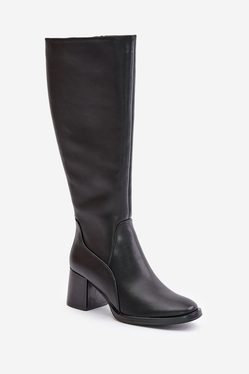 Kožené Boty Na Podpatku Před Kolenem Zateplené Sergio Leone KZ231-S Černé