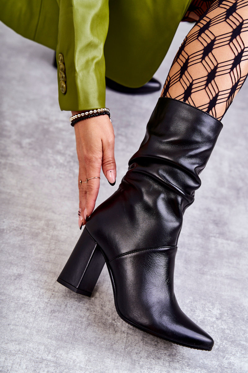 Kožené boty na vysokém podpatku Laura Messi 2560 Černe