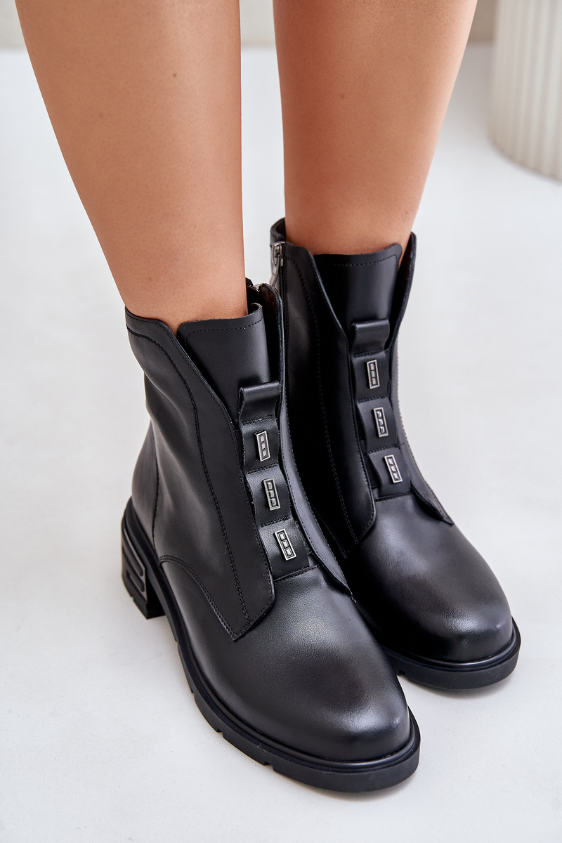 Kožené boty na zip zateplené černé Olidrila