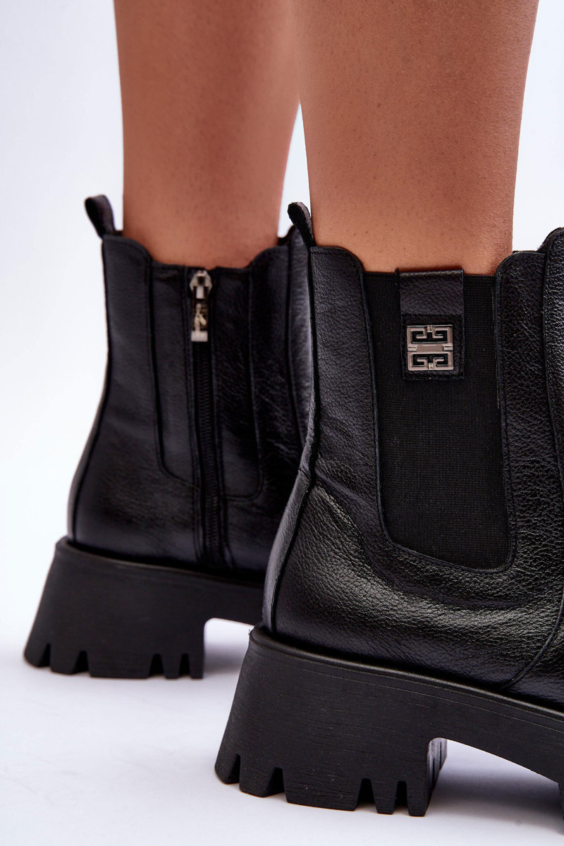 Boty na masivní platformě a plochém podpatku. Vyrobeno z přírodní kůže. Uvnitř zateplené obuvnickou vlnou. Špičky zaoblené. Ploché podpatky poskytnou stabilitu při každém kroku. Boty se skvěle hodí do podzimních stylizací. Při výběru velikosti se řiďte tabulkou velikostí.