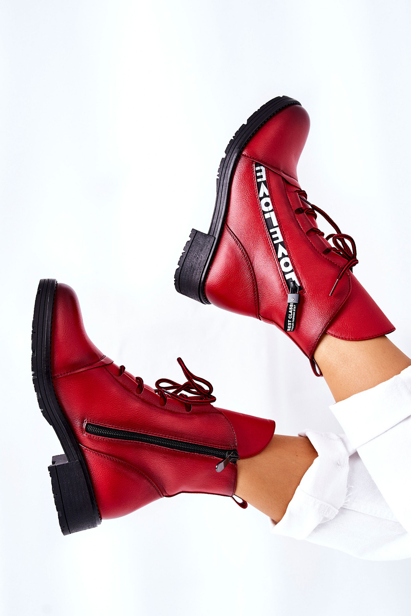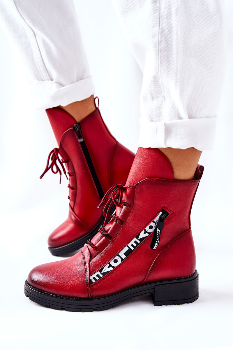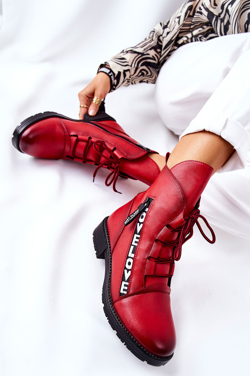 Kožené Boty S Ozdobným Zipem červené Lomissa