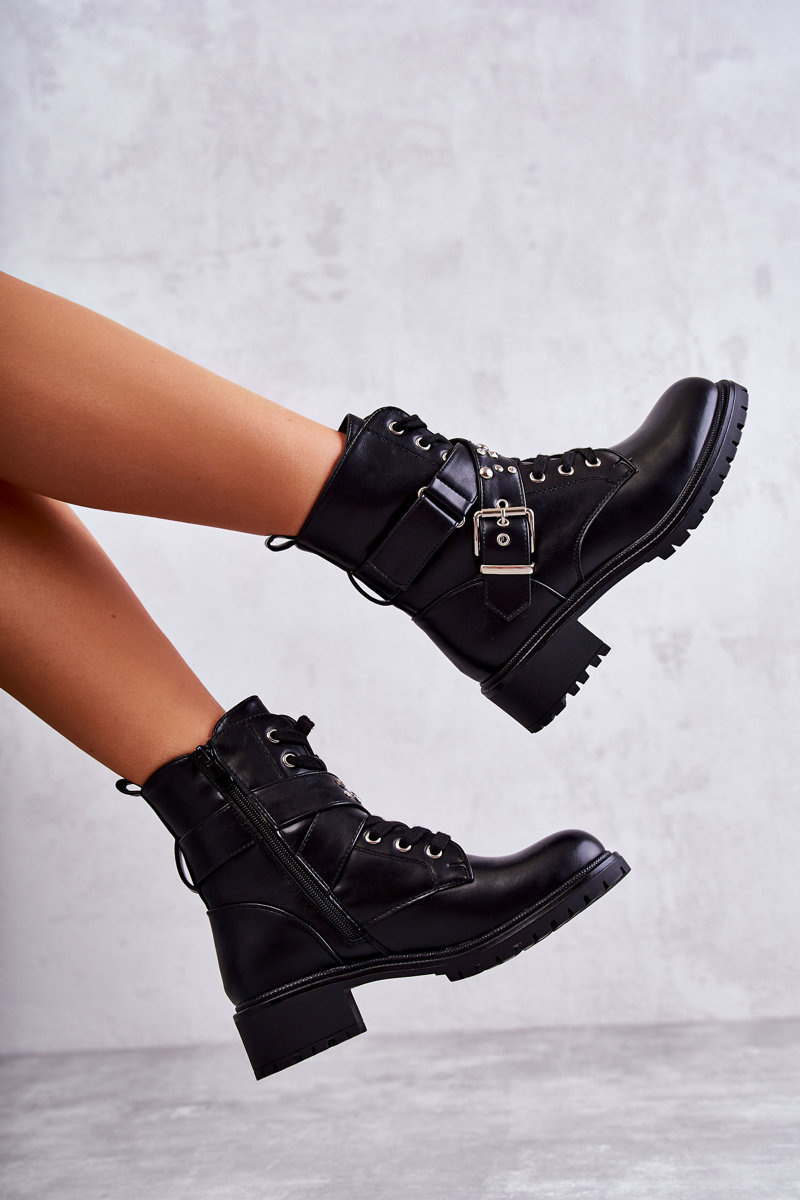 Kožené Boty S Páskem A Cvočky Černá Lanelly