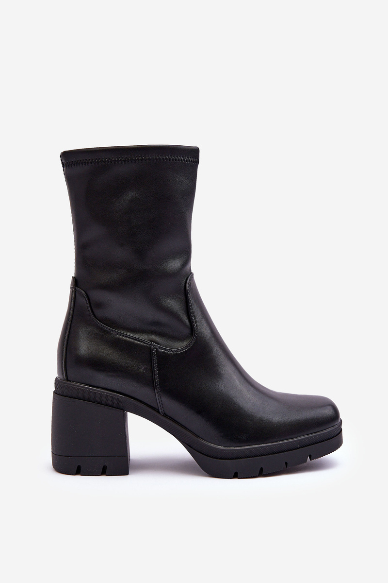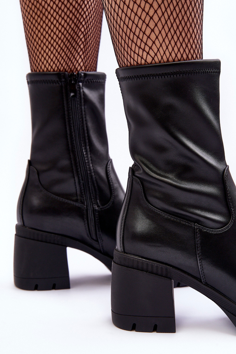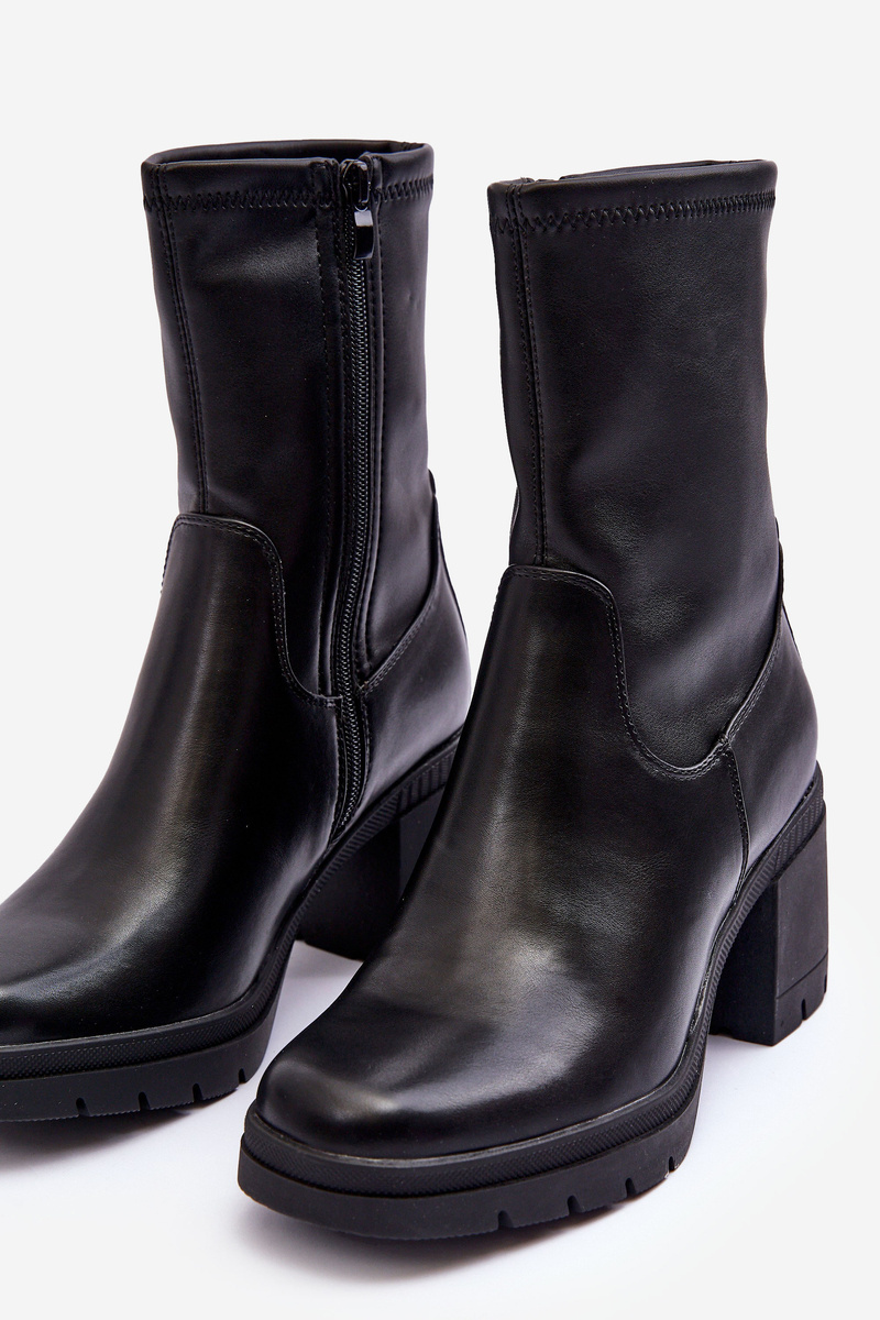 Dámské boty vyrobené z ekologické kůže. Upevněné na masivním podpatku a platformě. Zesílené patko. Špičky zaoblené. Tento model se zapíná na zip na straně. Vnitřek zateplený na výšku nohy obuvnickou vložkou. Boty budou skvěle fungovat v podzimních stylizacích. Při výběru velikosti se řiďte tabulkou velikostí.