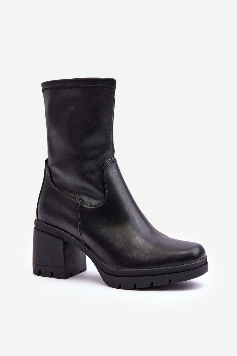 Kožené dámské boty na masivním podpatku černé Fllavie