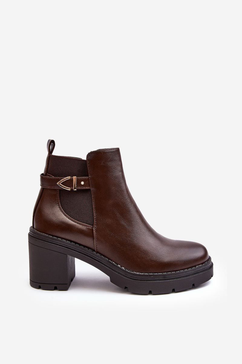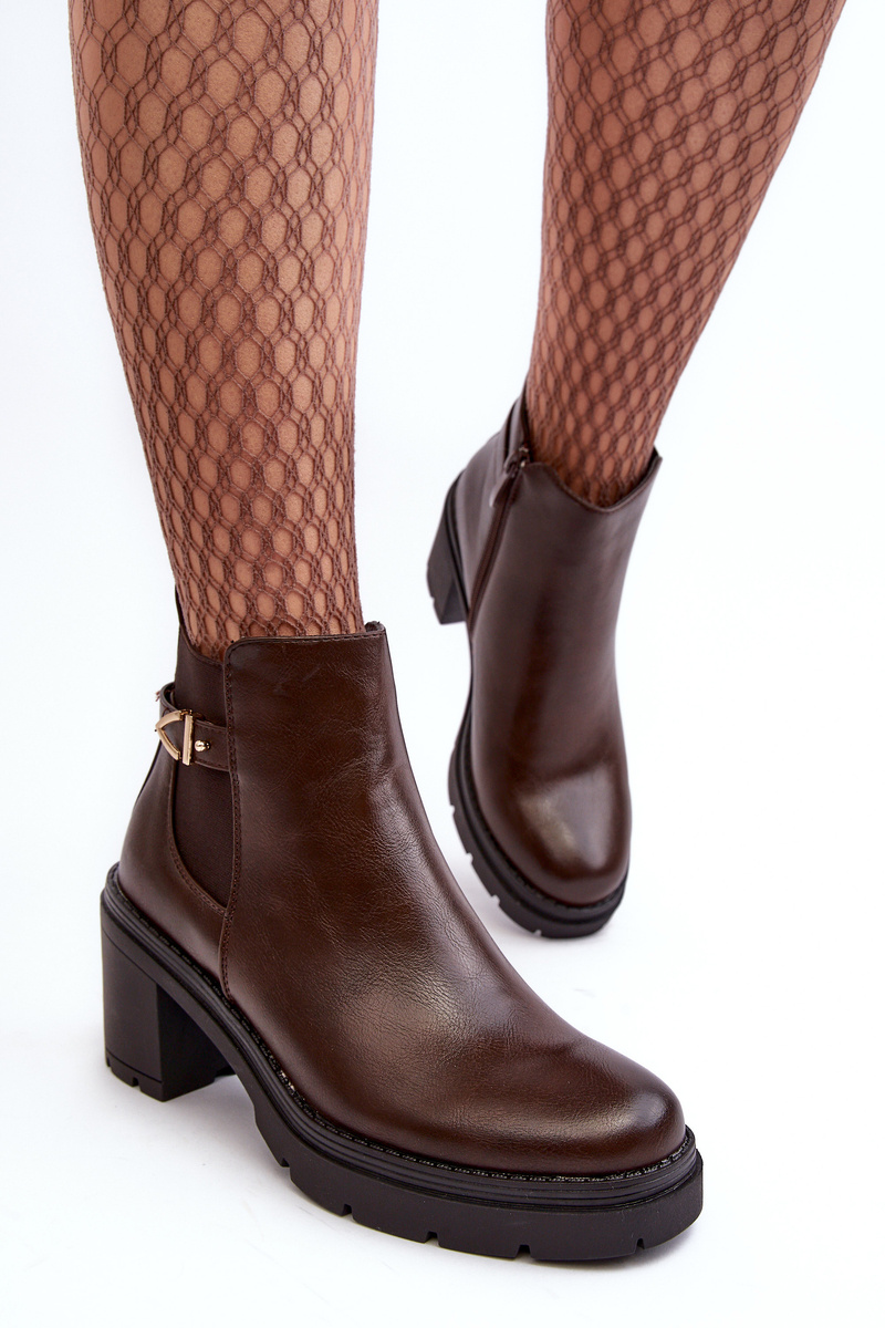 Kožené dámské boty na masivním sloupku hnědé Belinda