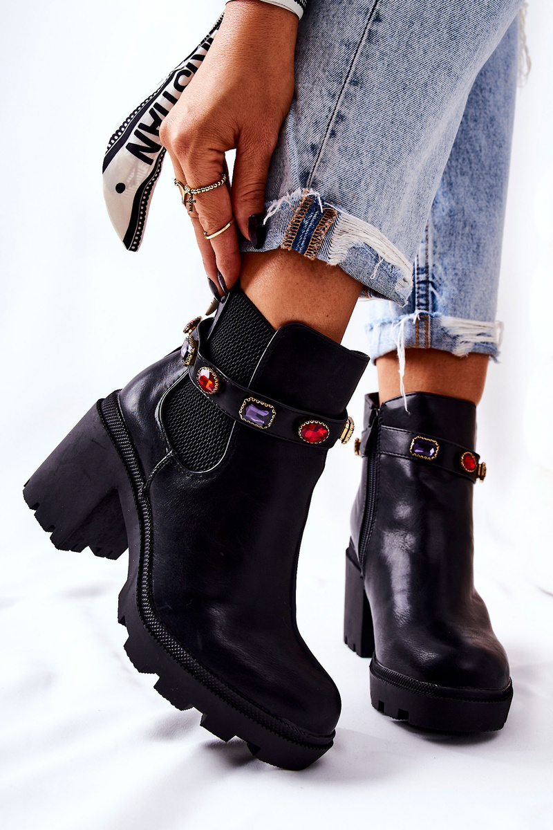 Dámské boty tohoto stylu byly vyrobeny z ekologické kůže. Vnitřní strana je zateplená na dotek příjemnou přikrývkou na boty. Pruh s krystaly na svršku. Zapínání na zip. Mají masivní jehlový podpatek.Při výběru velikosti zohledněte tabulku velikostí